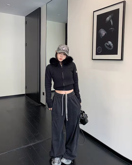 Oversized Collar Zip-Up Hoodie / Flare Sweatpants ASG0083