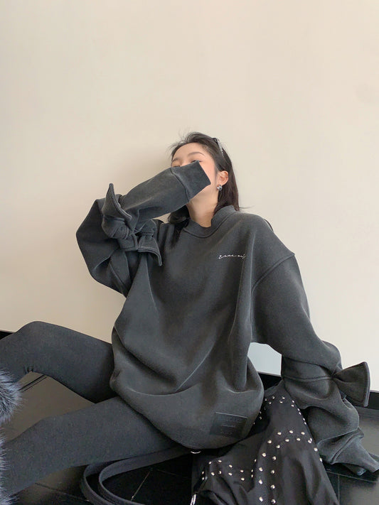 Bowknot Design Round Neck Sweatshirt YLS1018