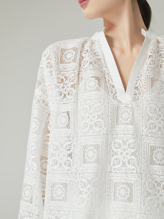 Flower Embroidered Long-Sleeve Shirt FER0098