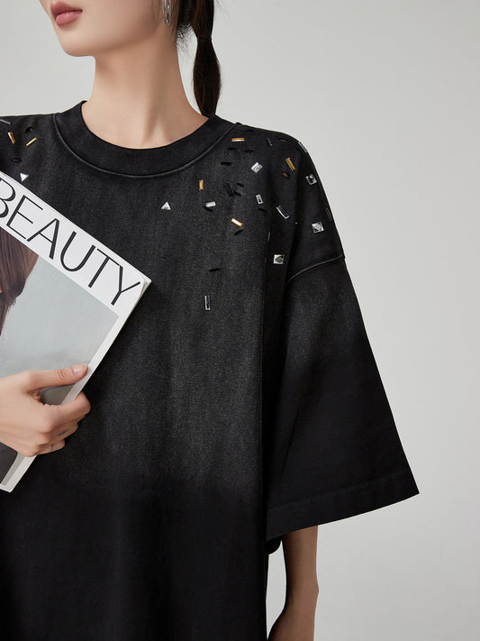 Speckled Rhinestone Knit Cardigan / Rhinestone Flash Jeans KIP0010