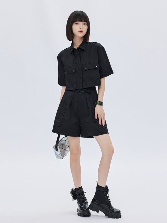 Gray Collared Long-Sleeve Shirt / Shorts FER0064