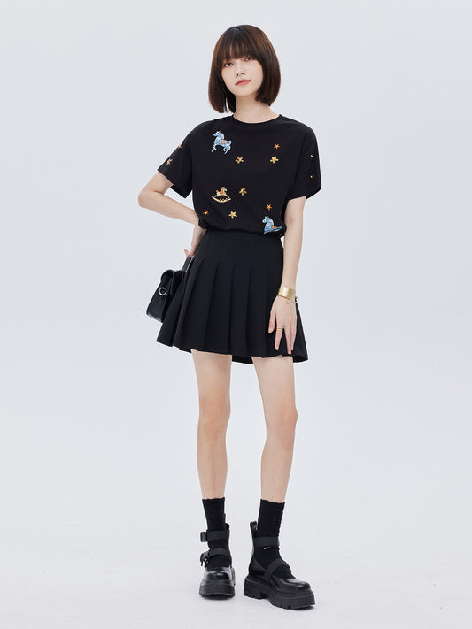 Rhinestone Short-Sleeve T-Shirt Dress FER0080
