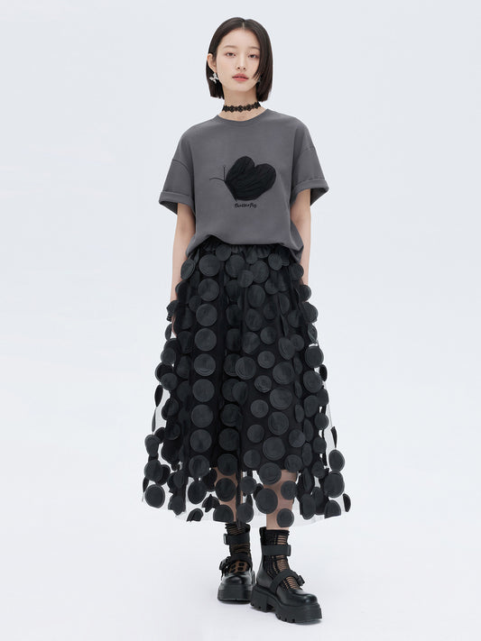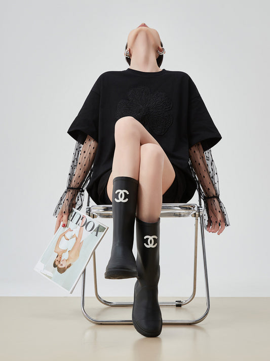 Lace Sleeve Round Neck T-Shirt FER0082
