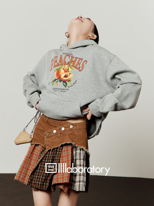 Fruit Print Sweat Hoodie / Docking Mini Skirt LLA0644