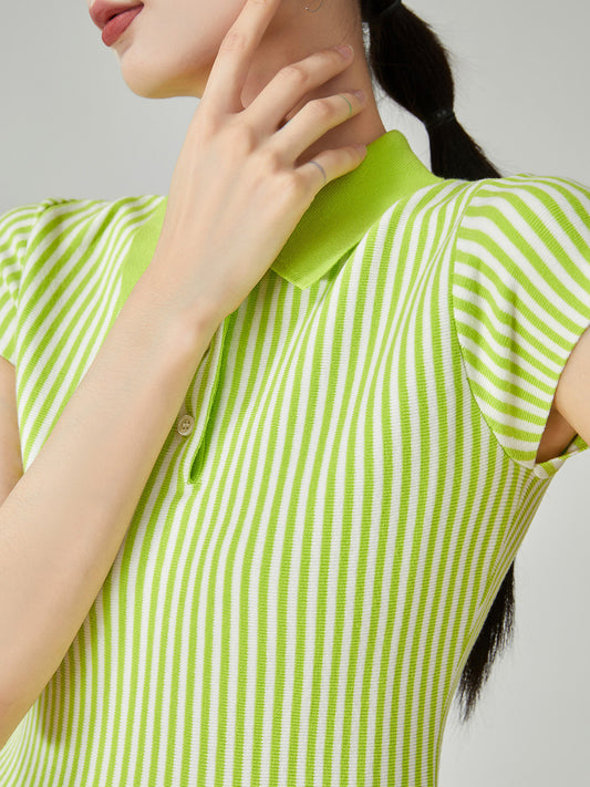 Green Striped Flare Mini Dress FER0081