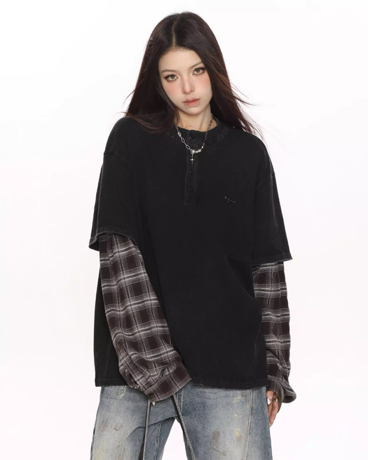 Plaid Two-Piece Long Sleeve T-Shirt BGS0046