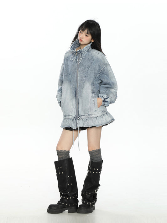 Denim-Style Zip Hoodie / Elastic Waist Mini Skirt FER0051