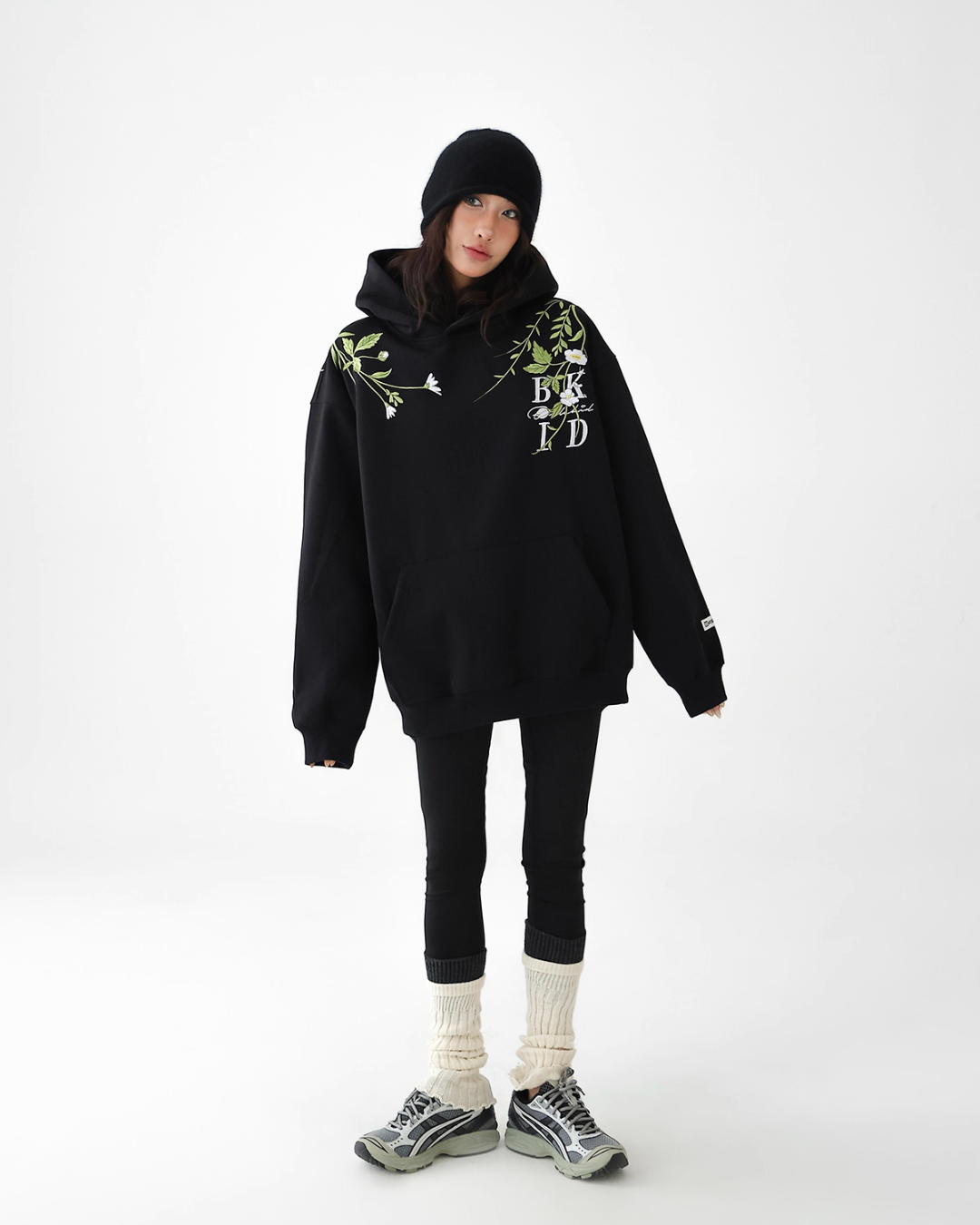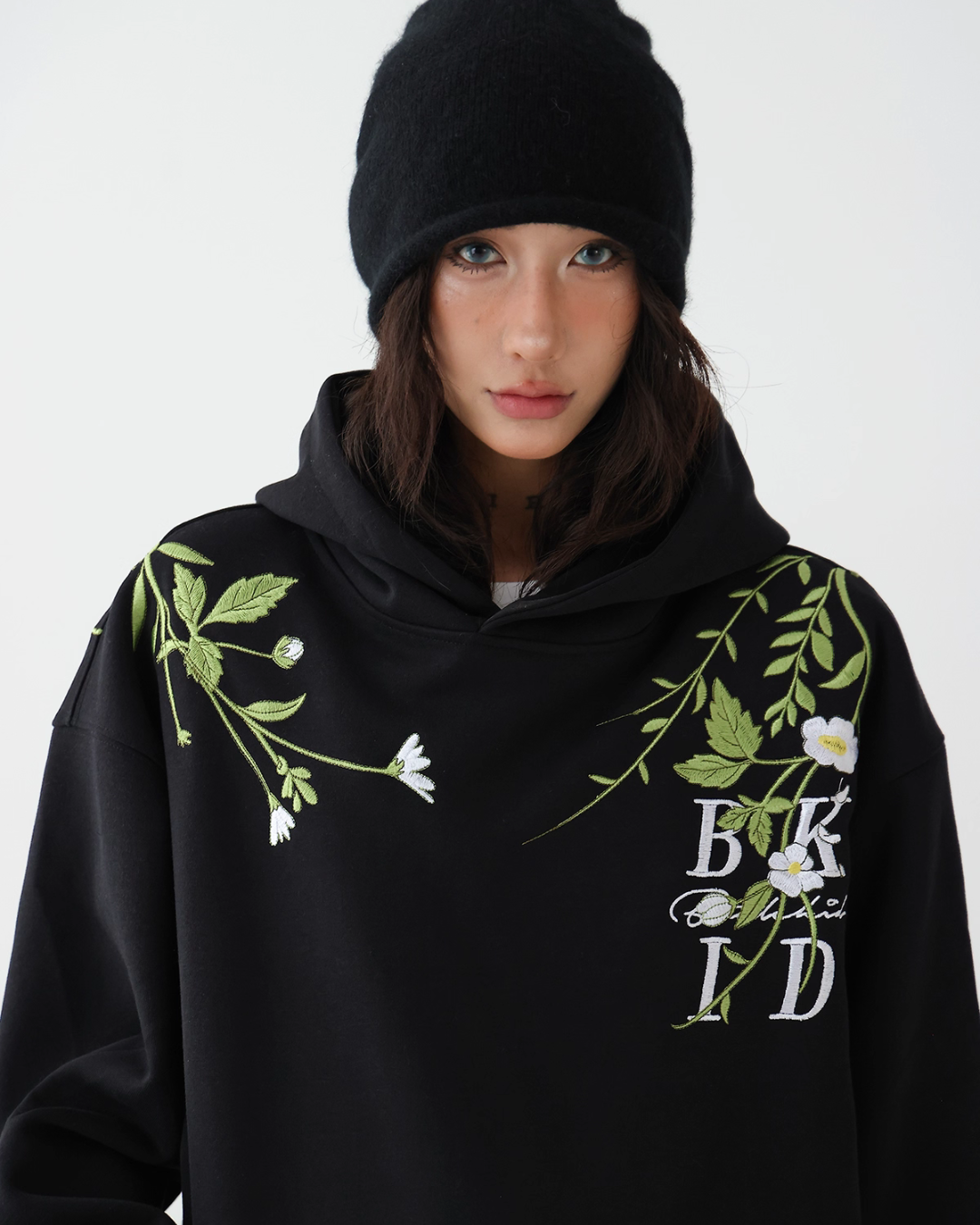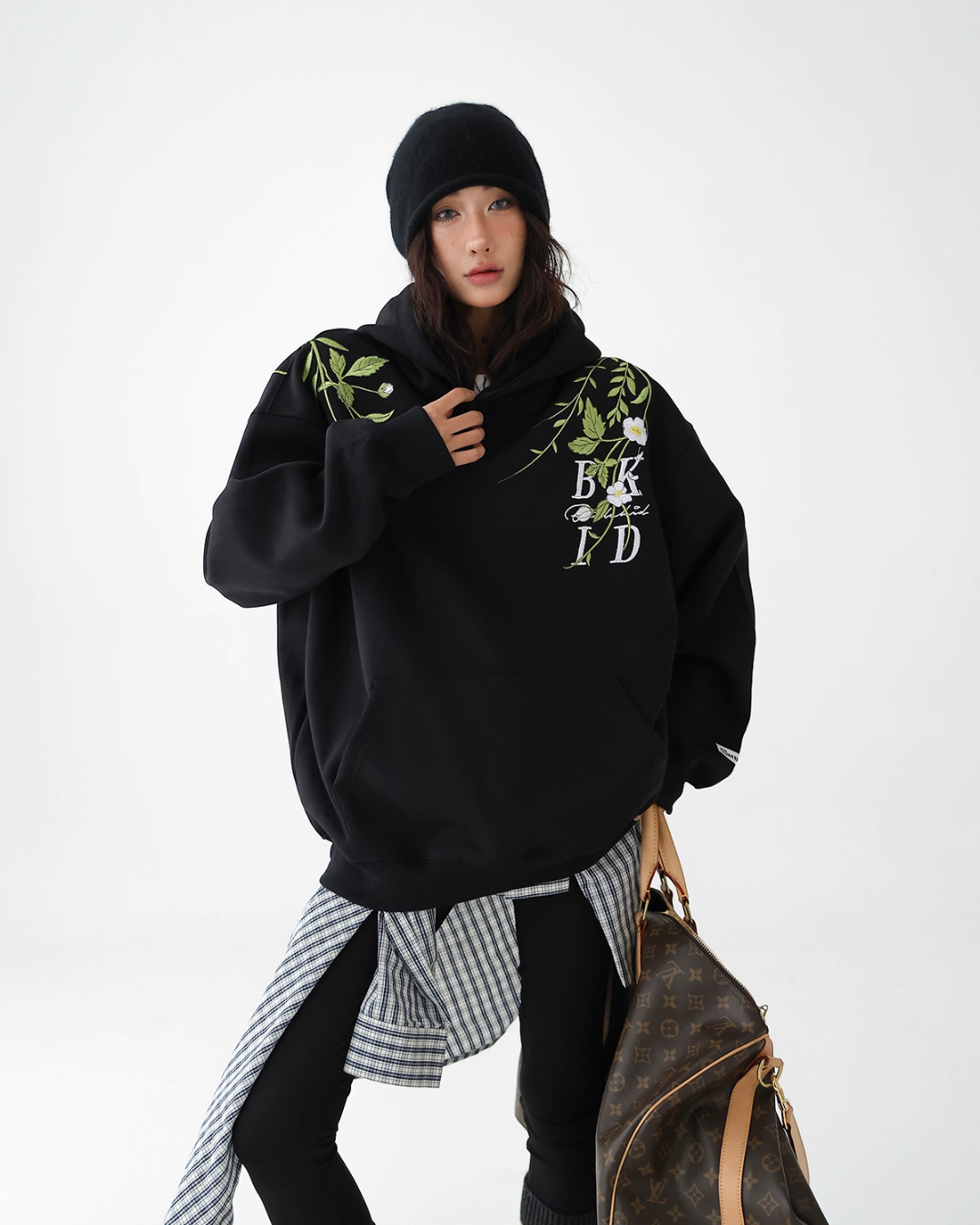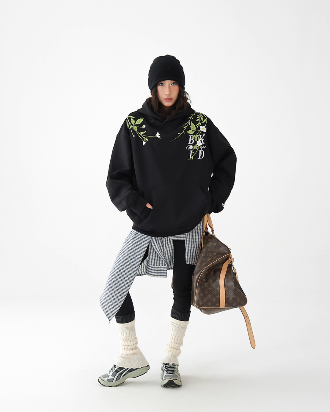 Flower Embroidery Loose Sweat Hoodie ACS0266