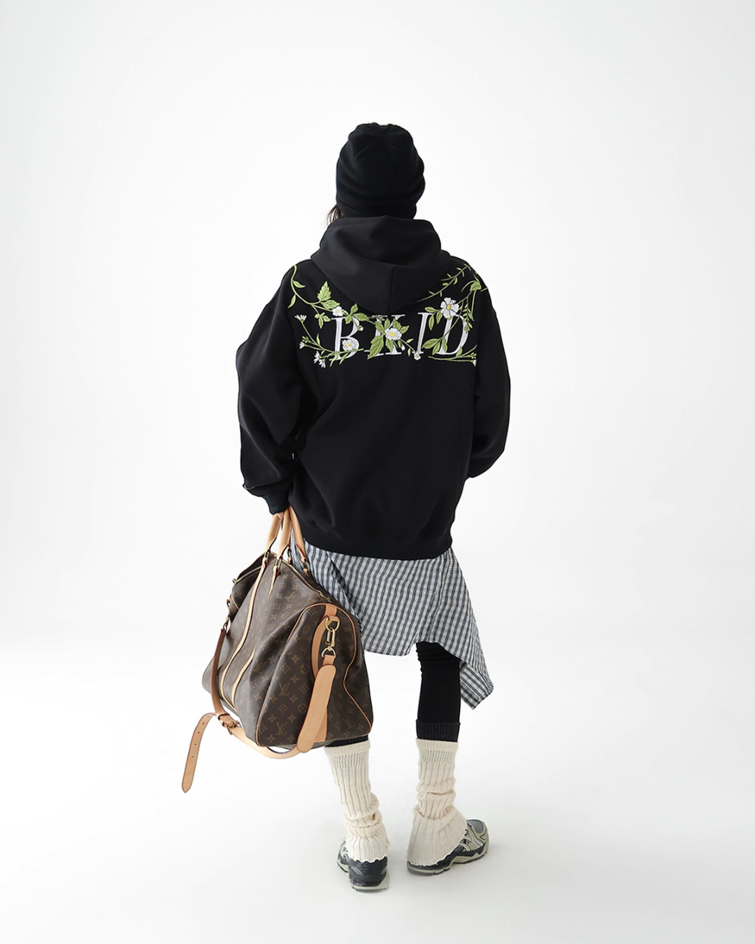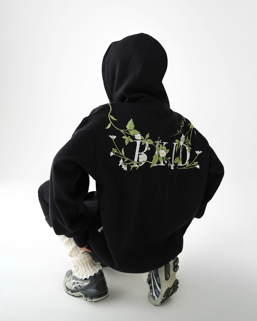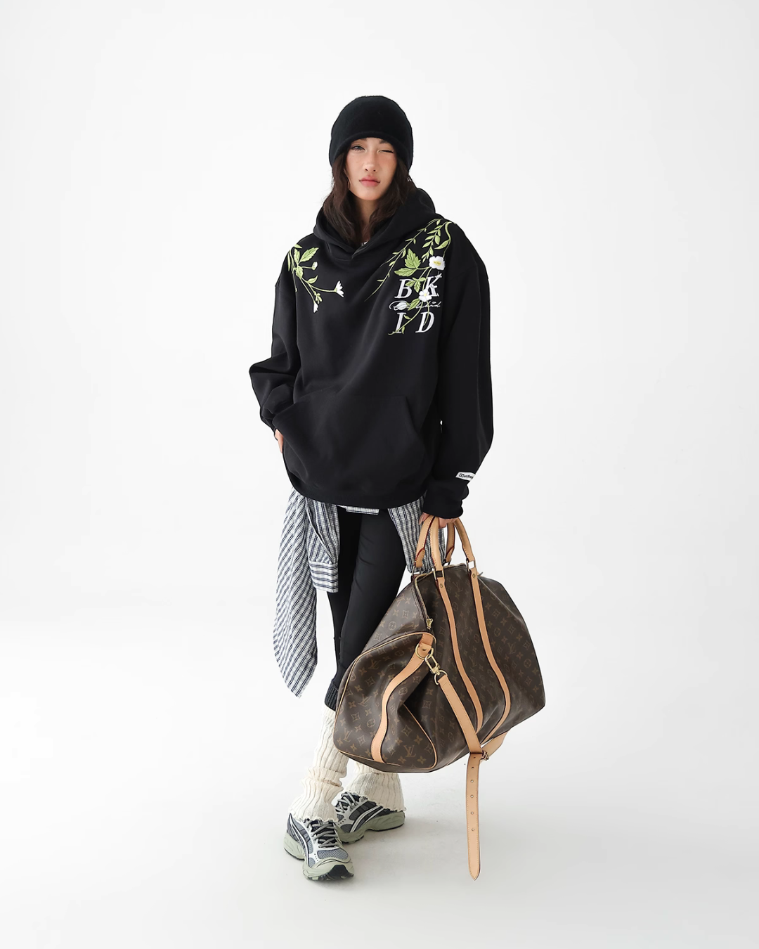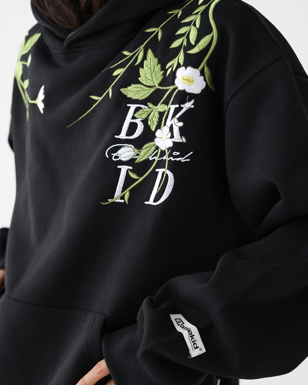 Flower Embroidery Loose Sweat Hoodie ACS0266