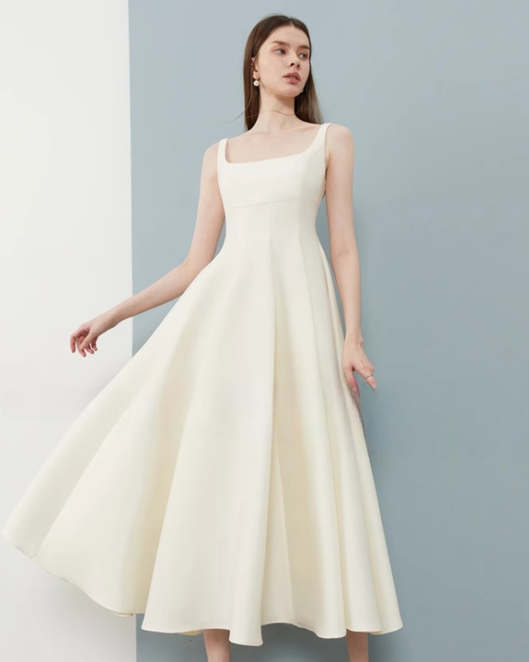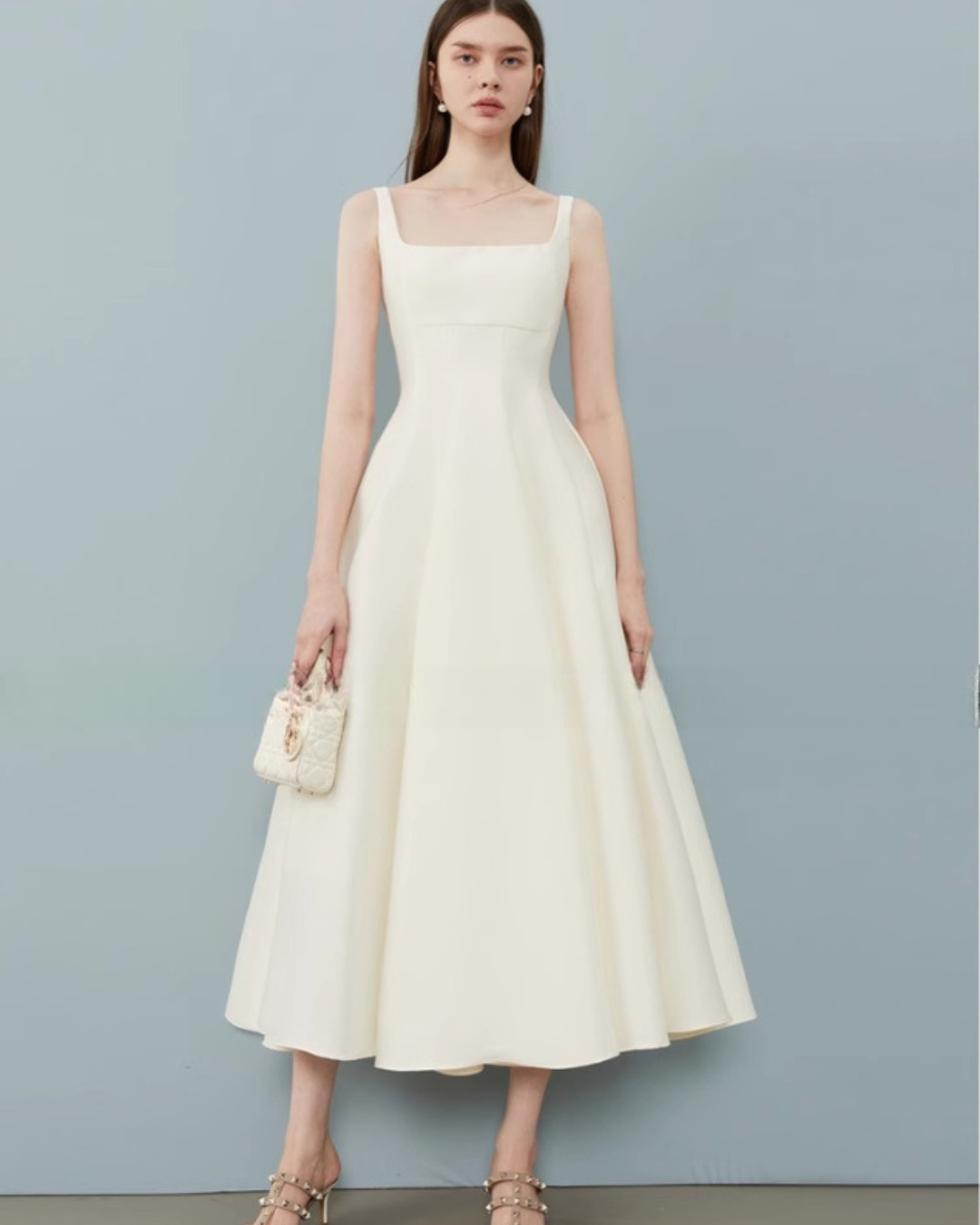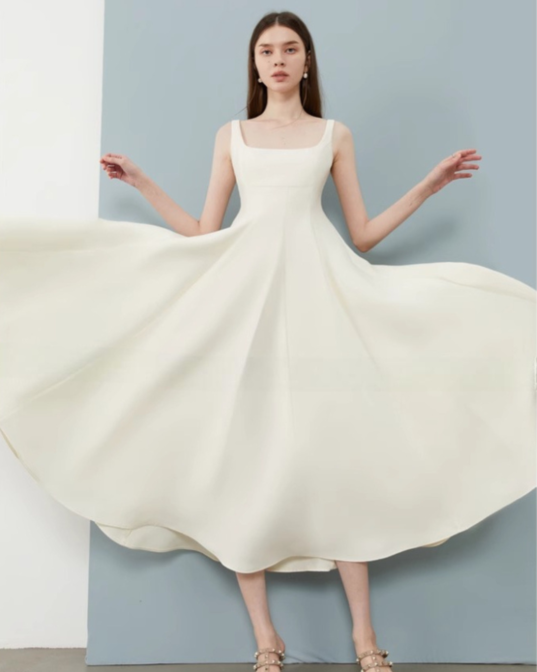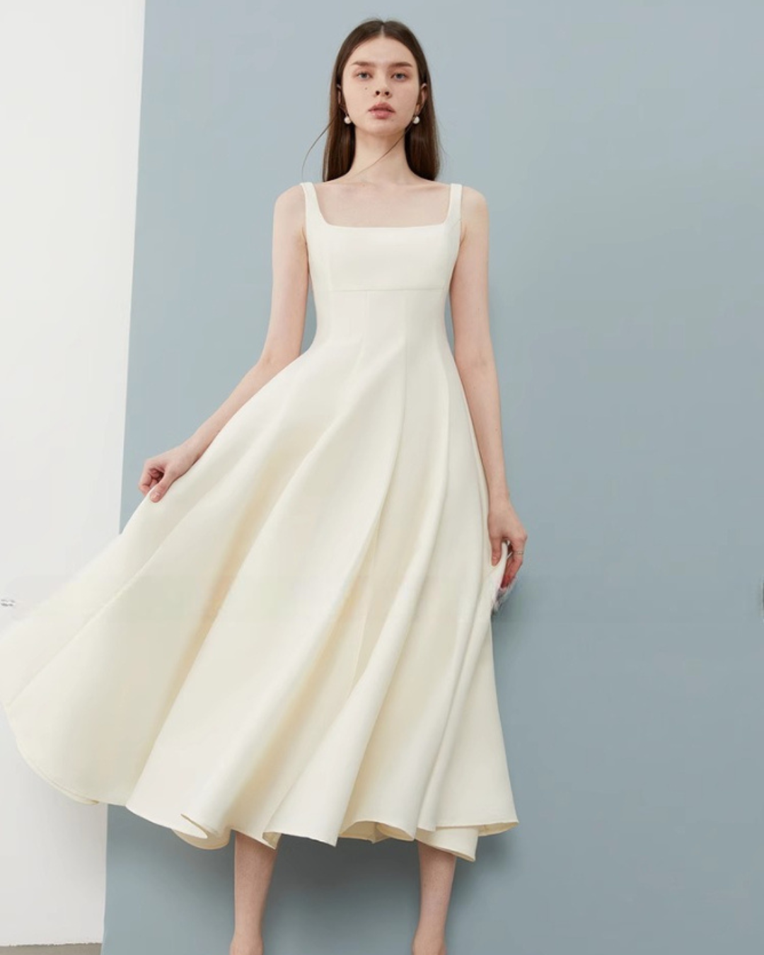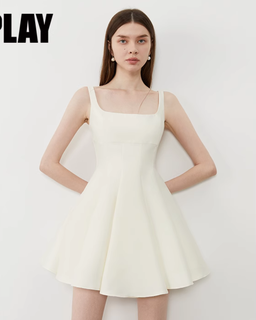徐々に広がるフレアシルエットでエレガントなムードが漂う一枚。