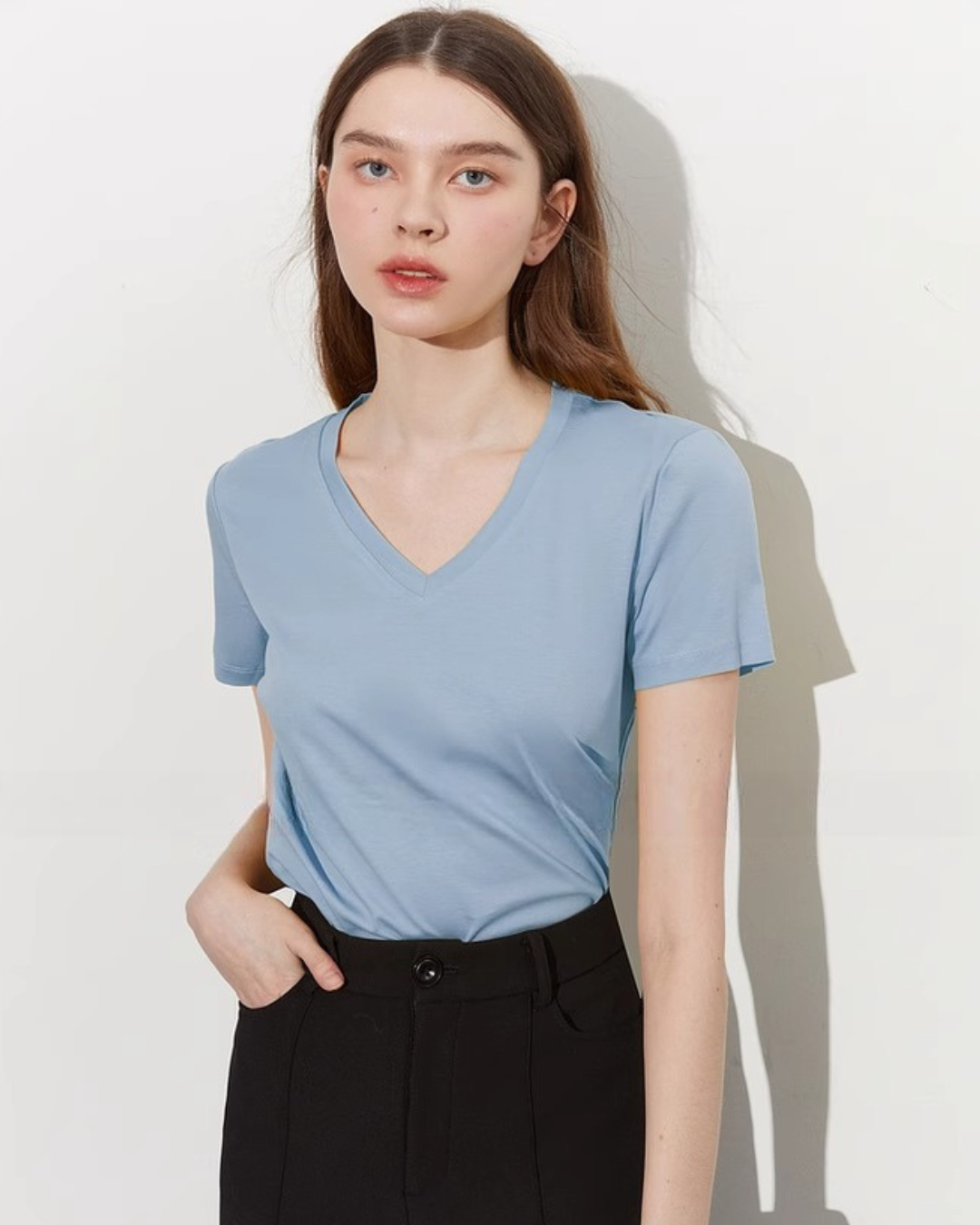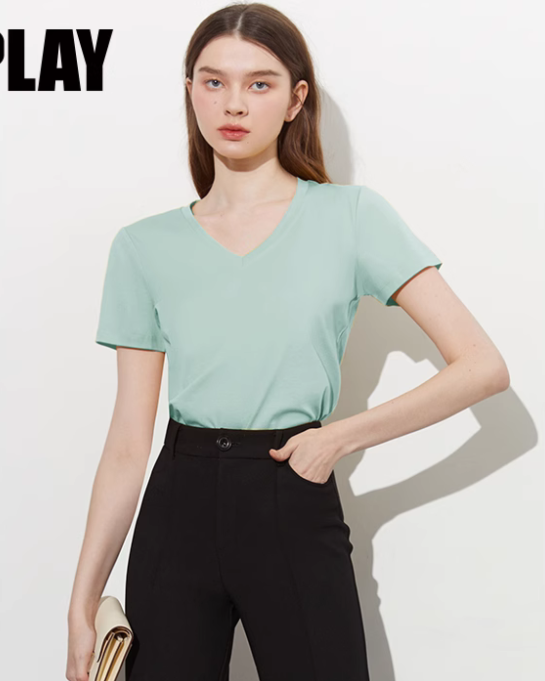 ジャケットやカーデを羽織れば、秋から春服のインナーとしても着用できる。