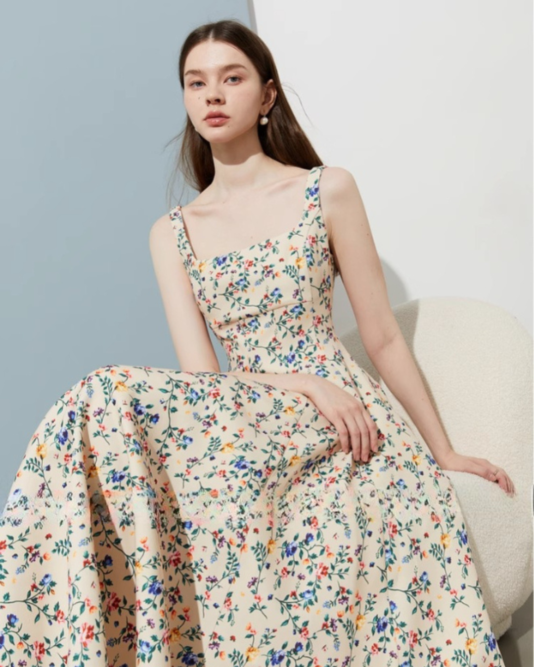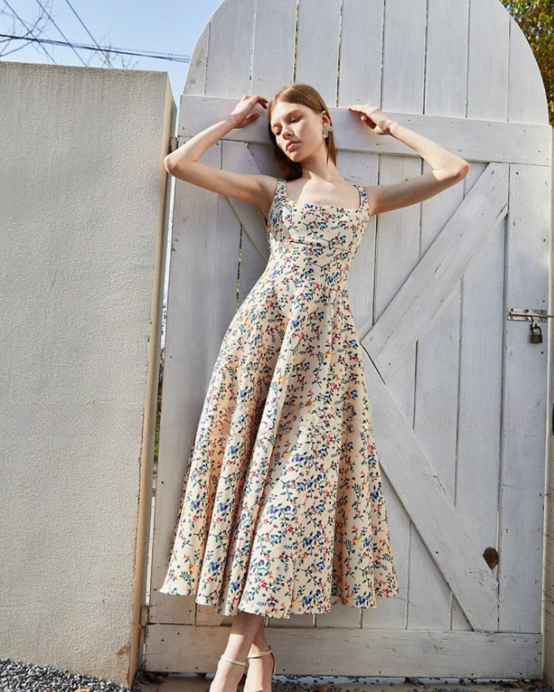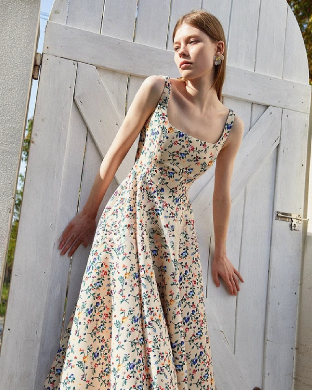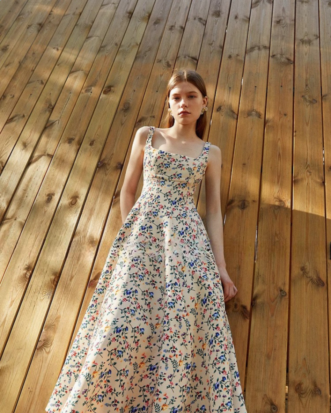 フラワー模様がエレガントな雰囲気漂うワンピース。