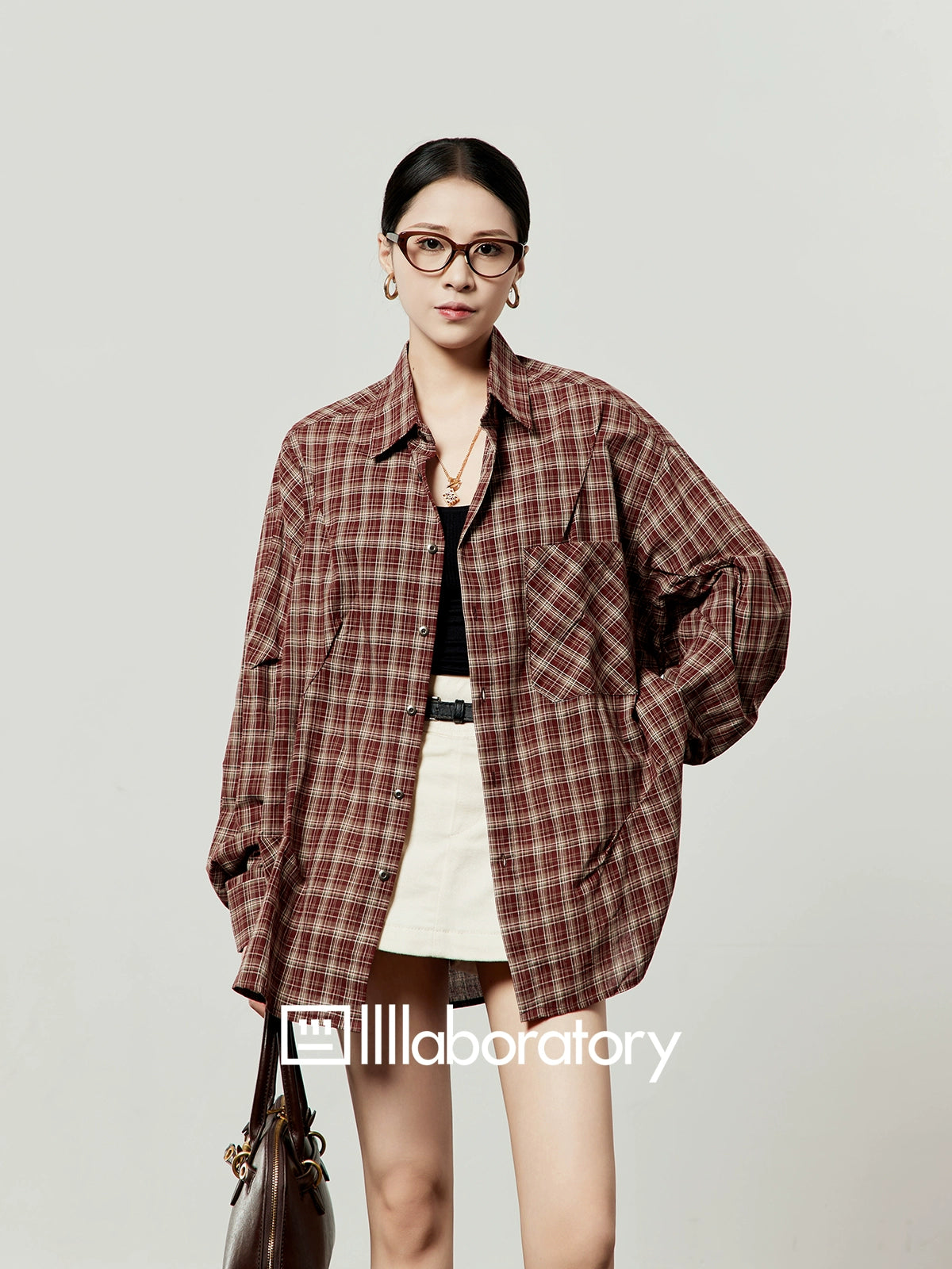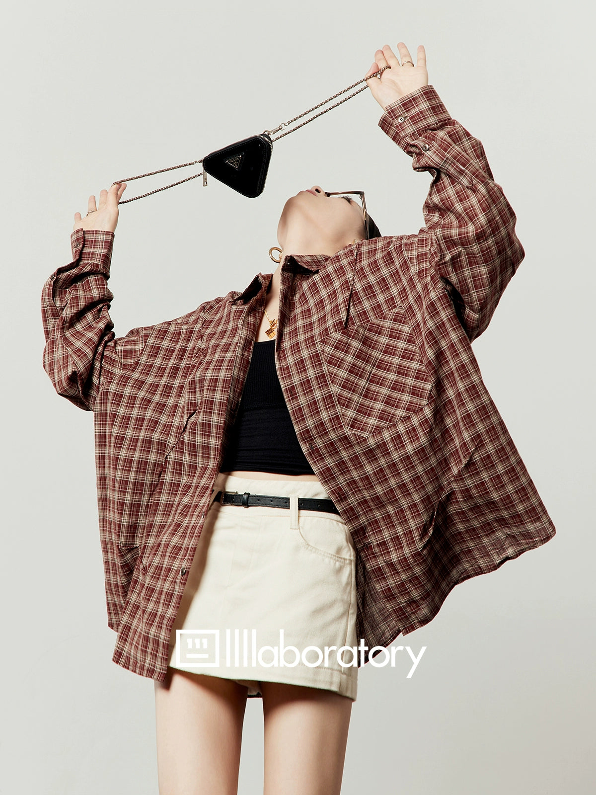Retro Casual Check Shirt / White Denim Skirt LLA0512