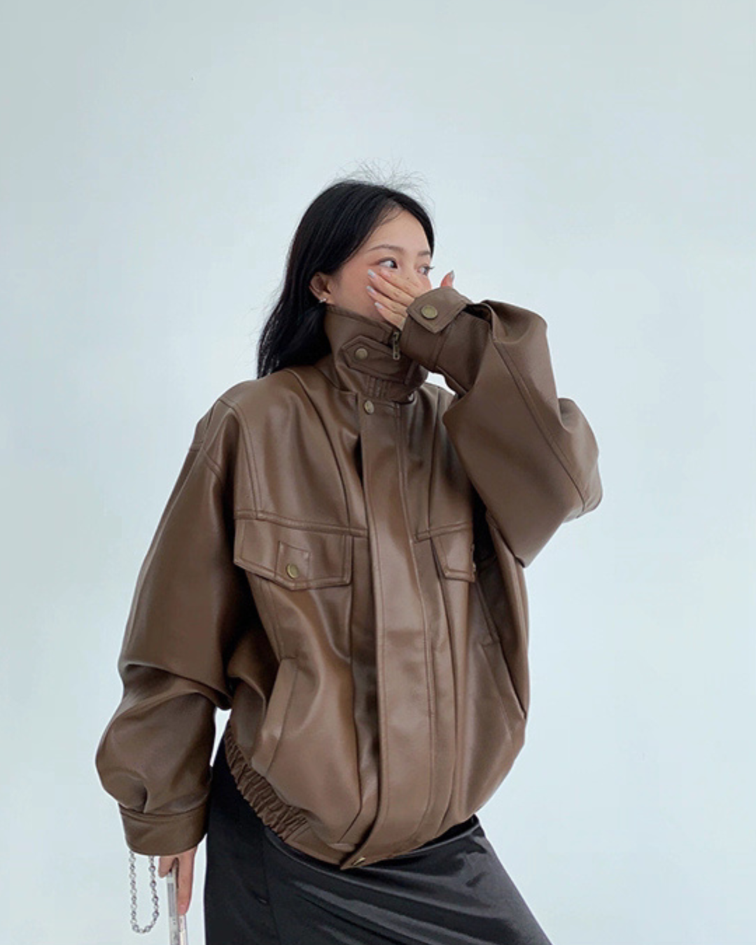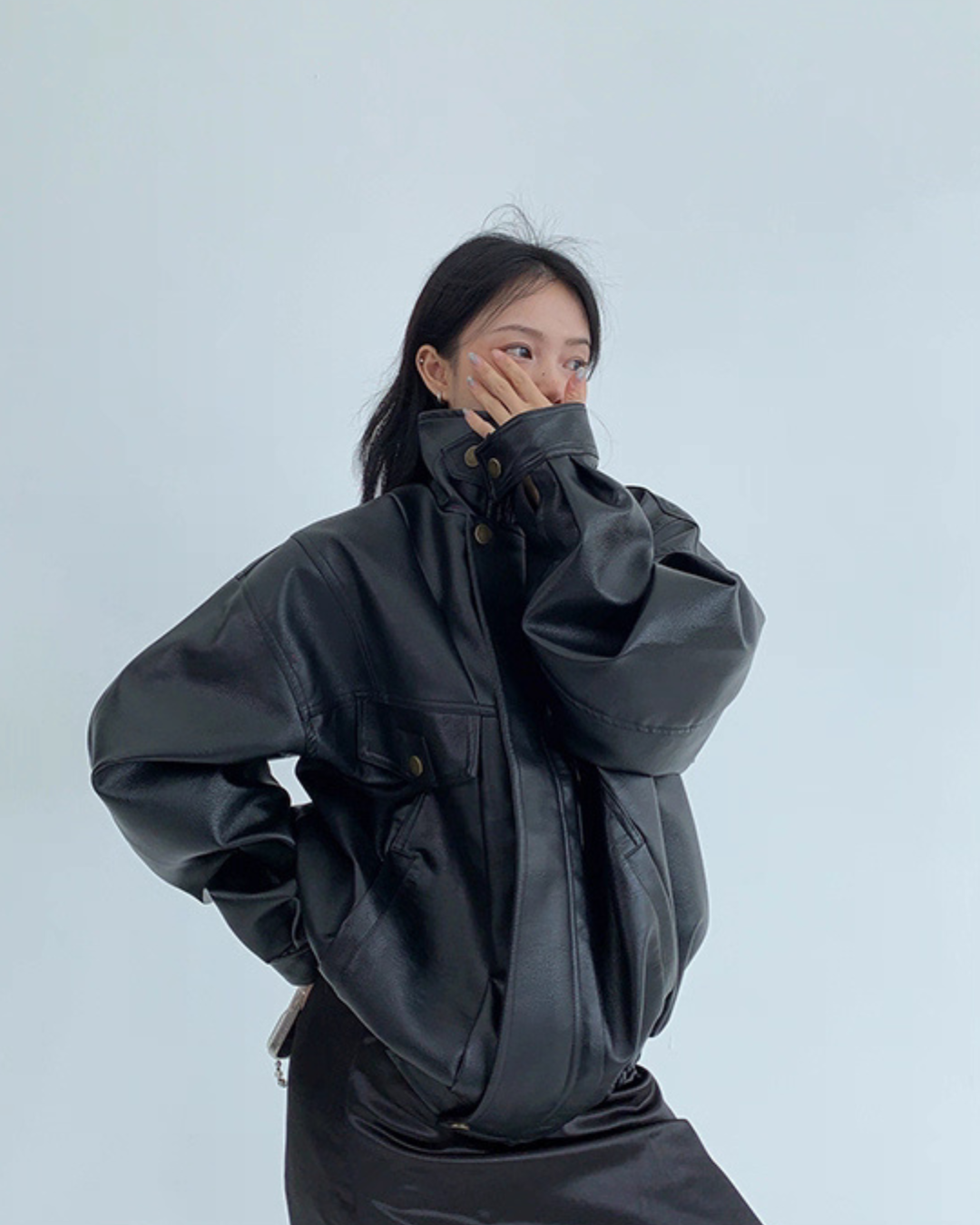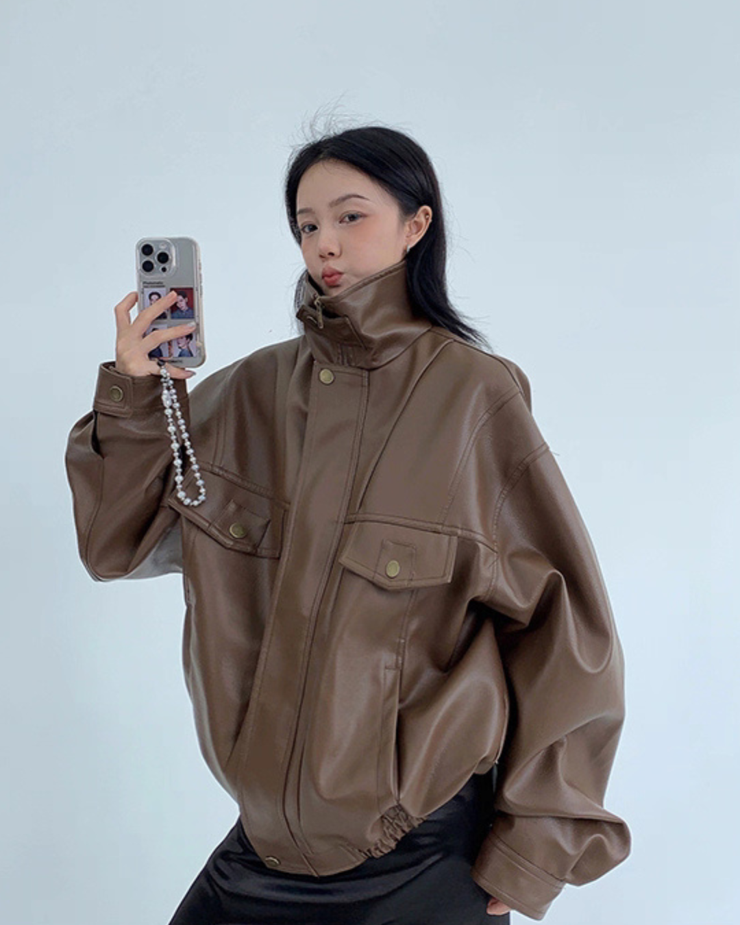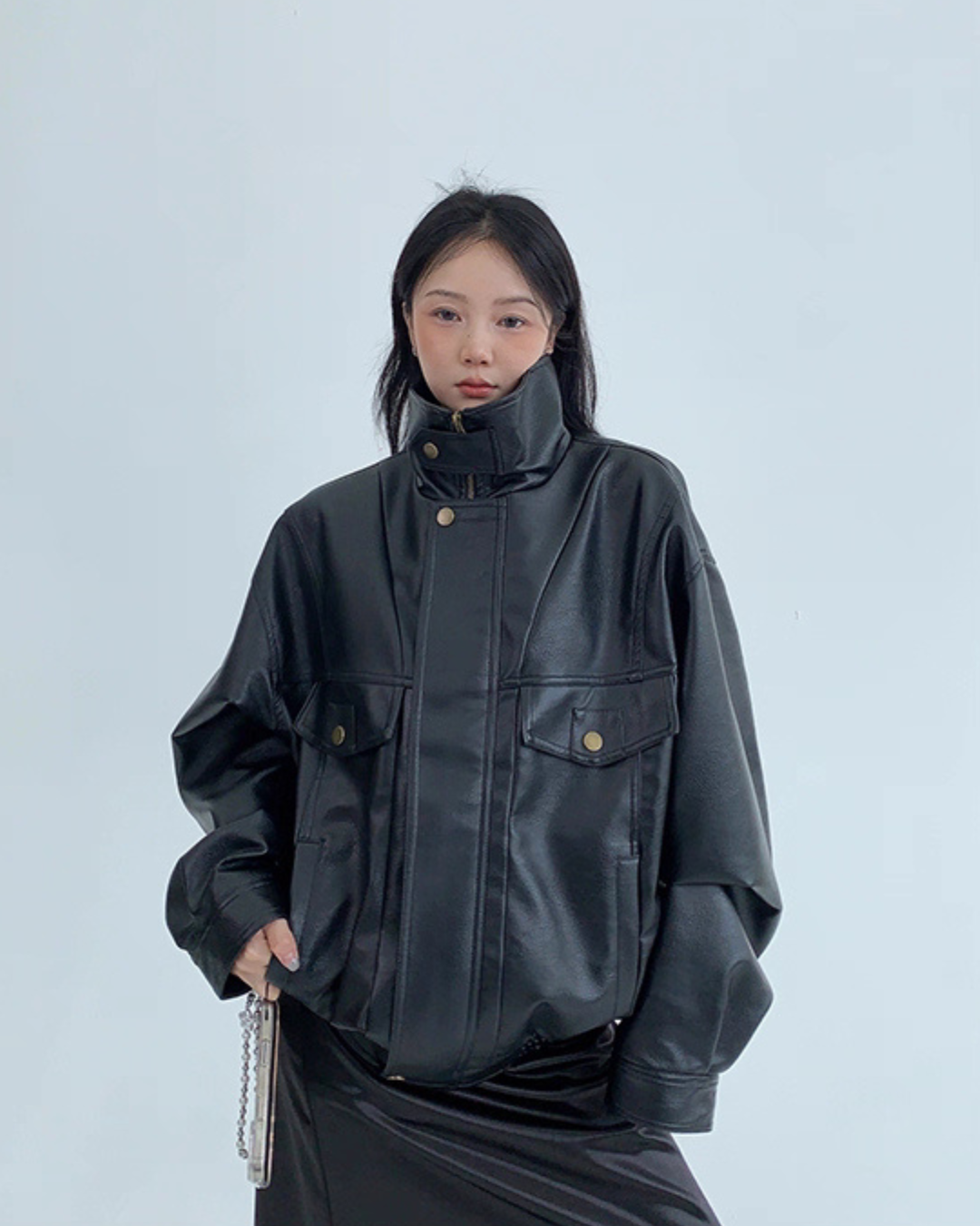 Stand Collar Fake Leather Blouson YLS0909