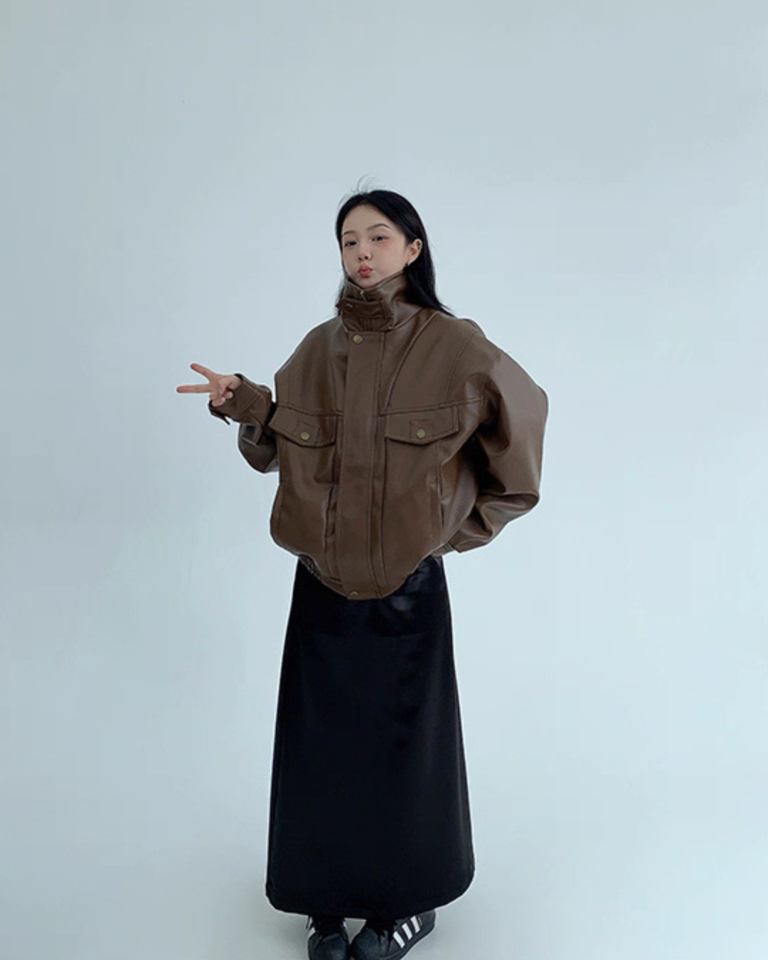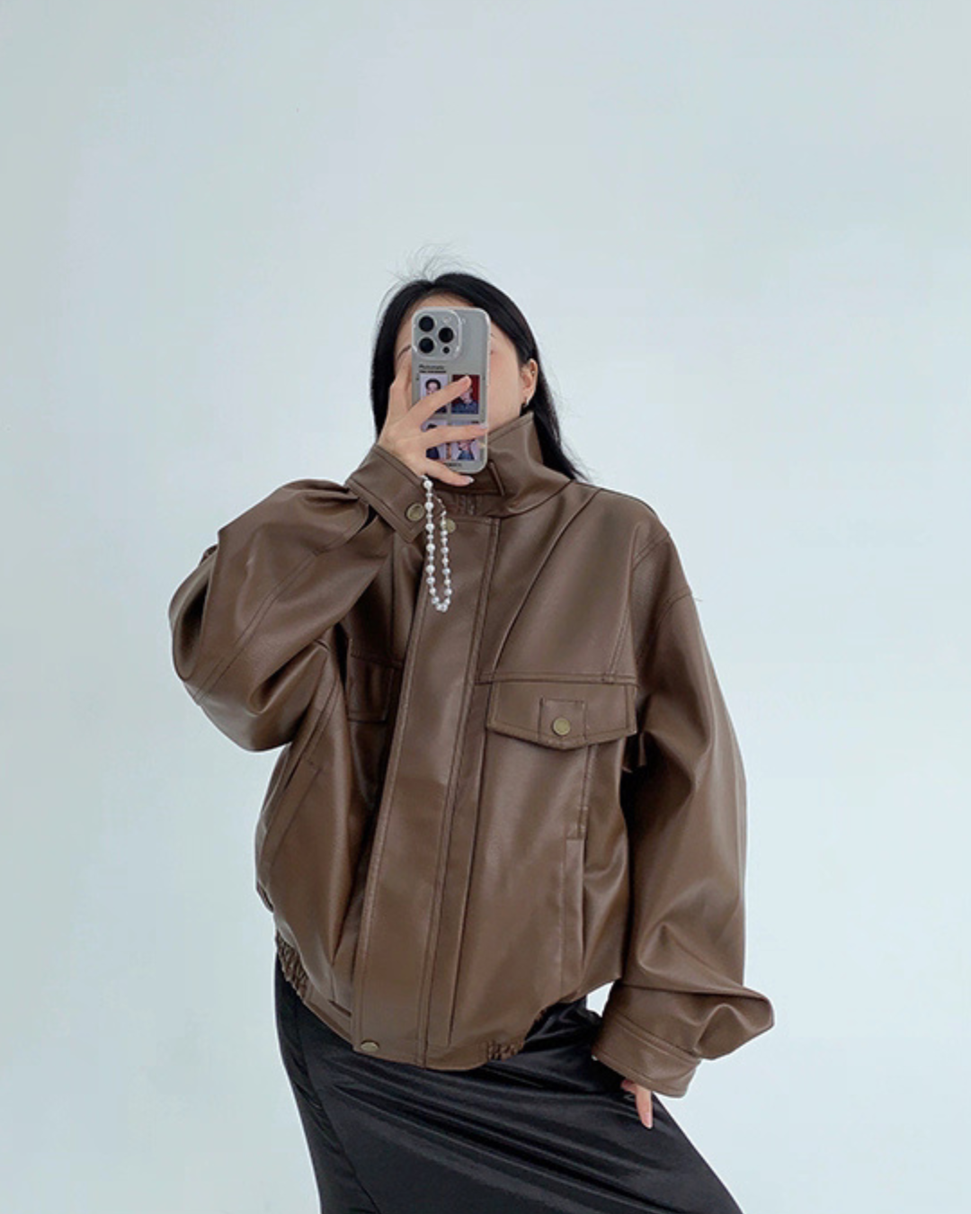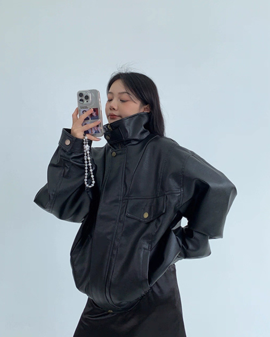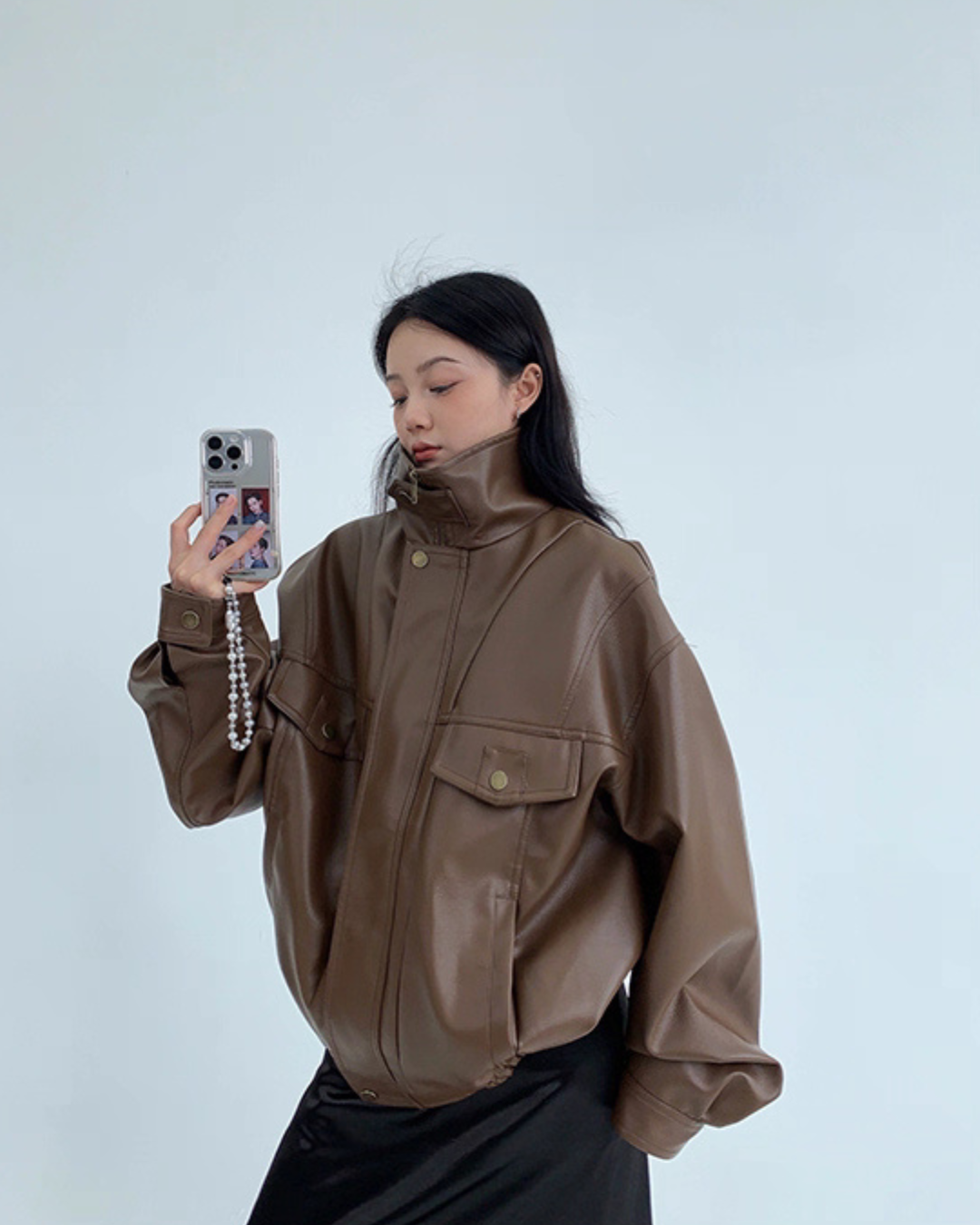 Stand Collar Fake Leather Blouson YLS0909