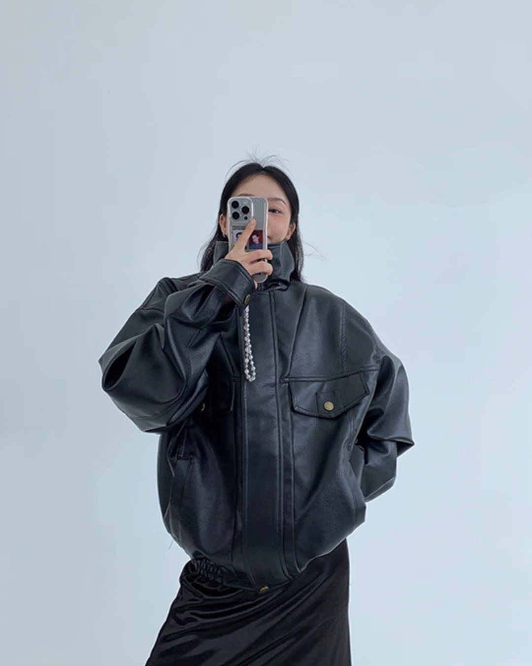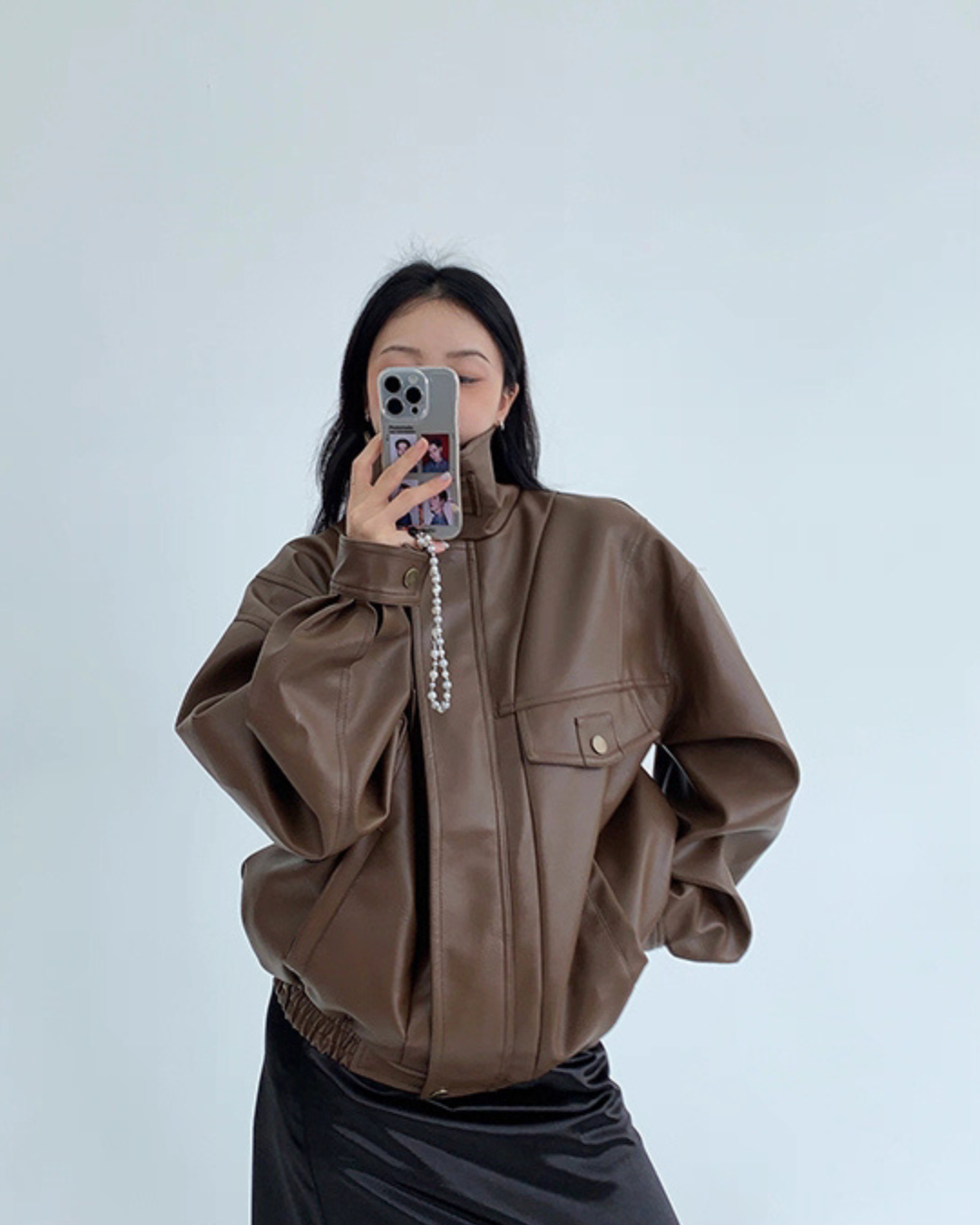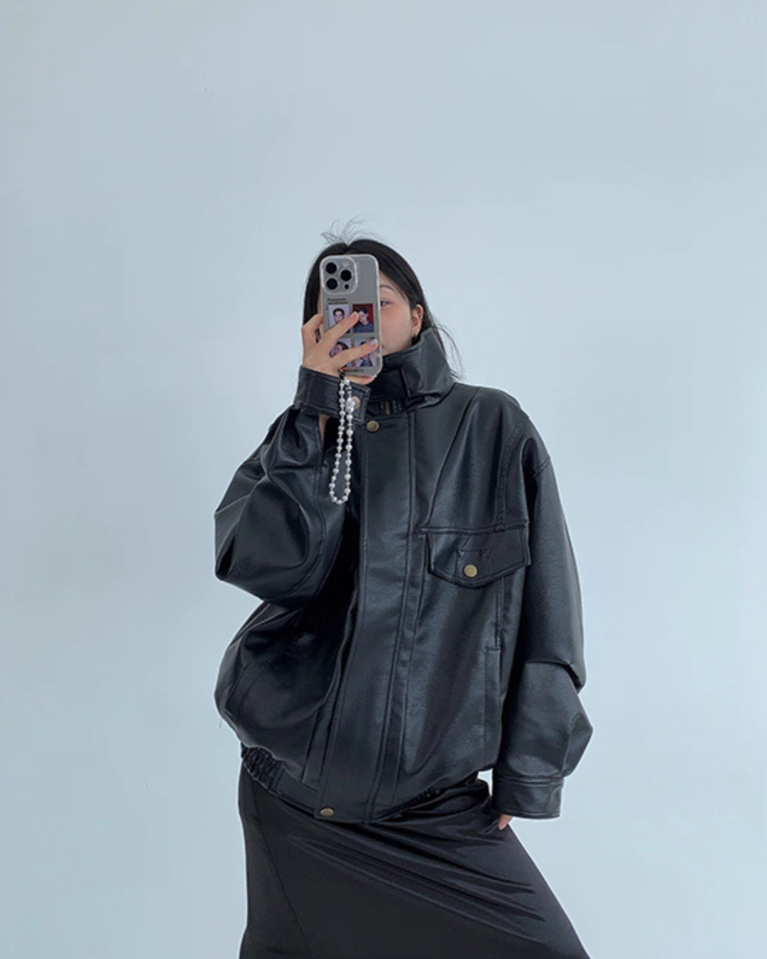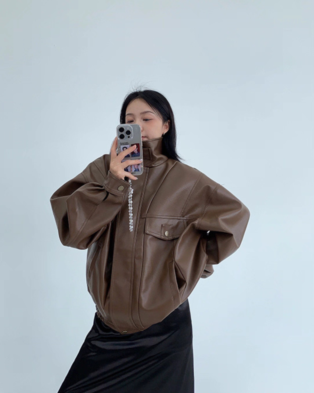 Stand Collar Fake Leather Blouson YLS0909