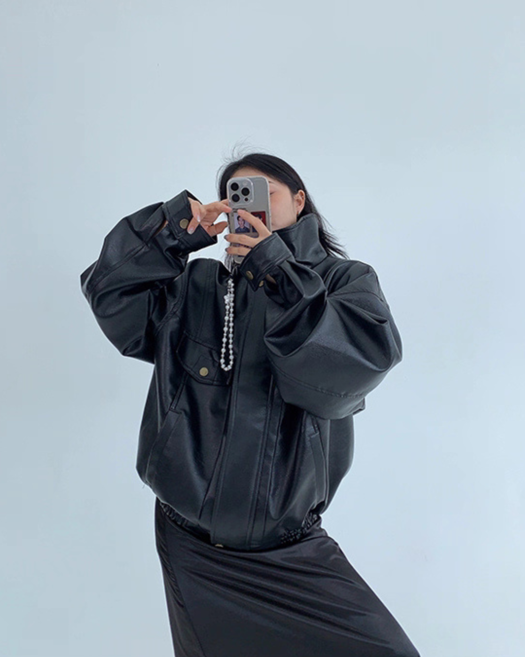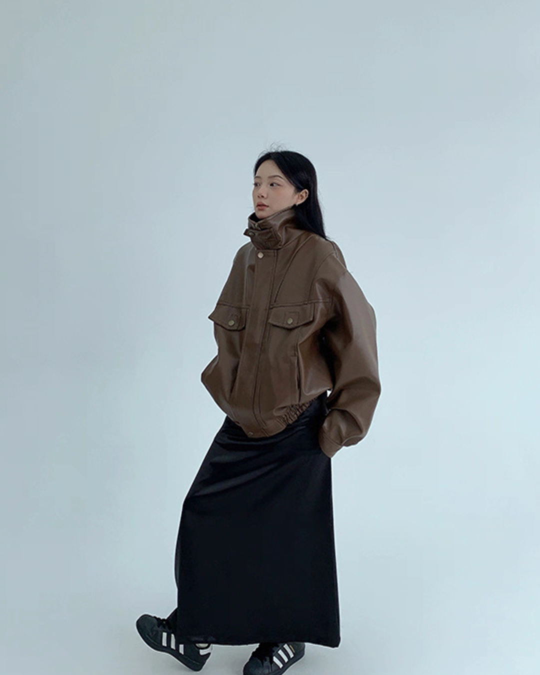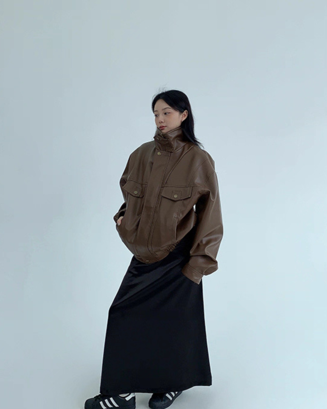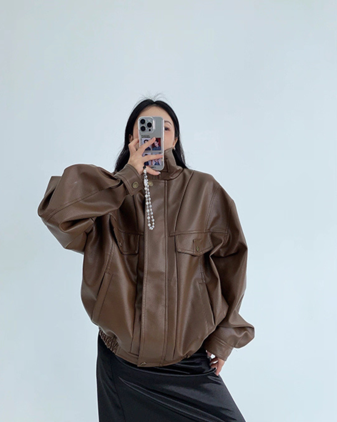 Stand Collar Fake Leather Blouson YLS0909