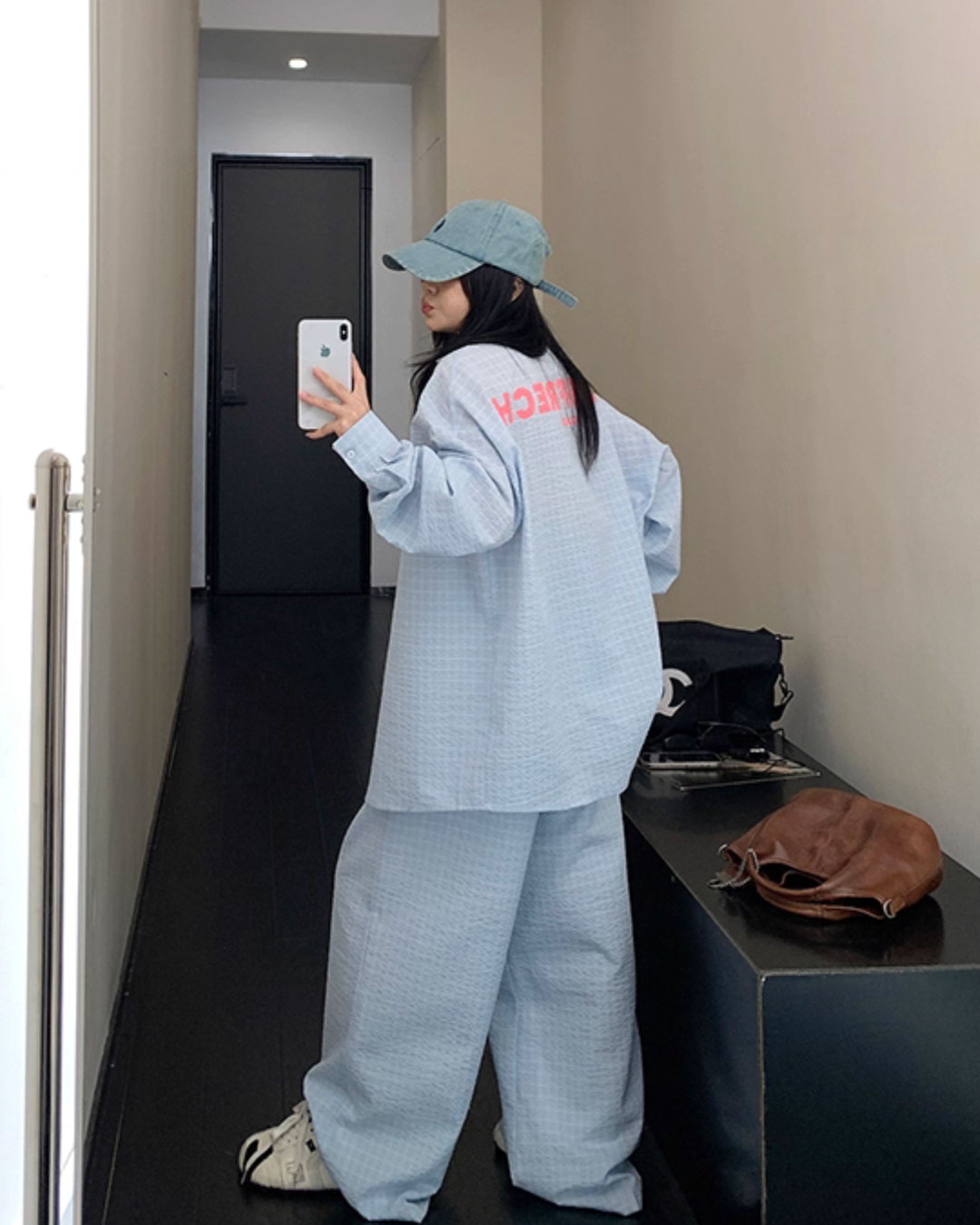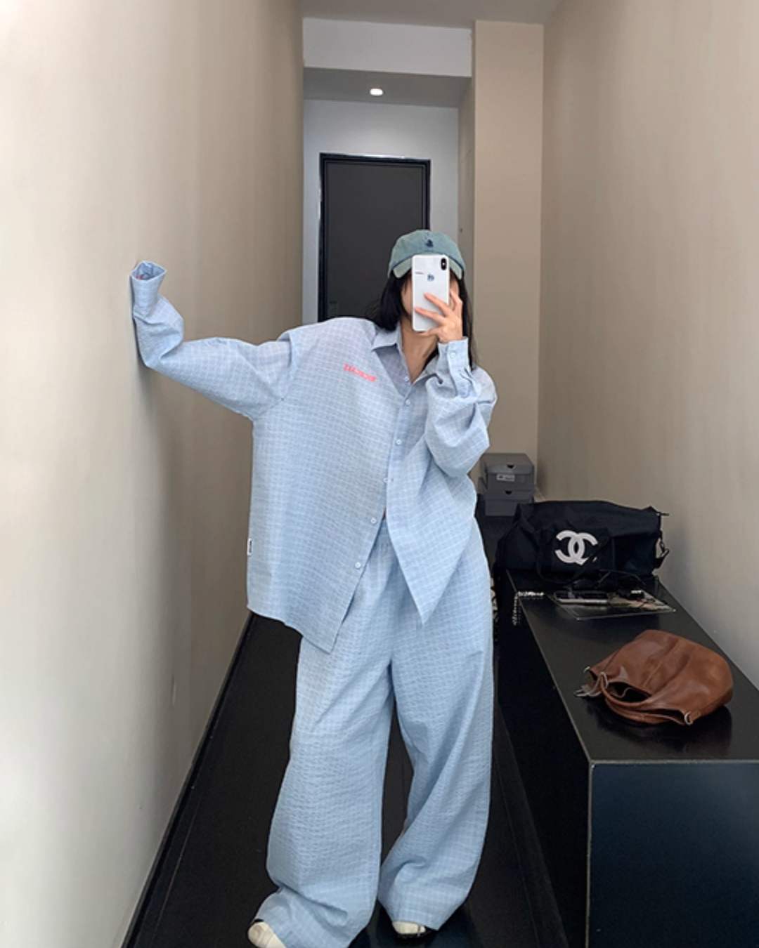 Plaid Long Sleeve Shirt / Loose Pants YLS0916