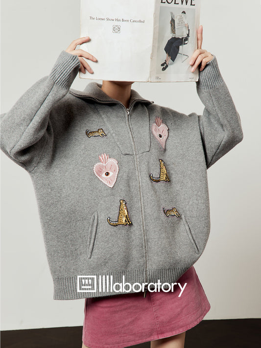 Leopard Embroidery Loose Knit LLA0600