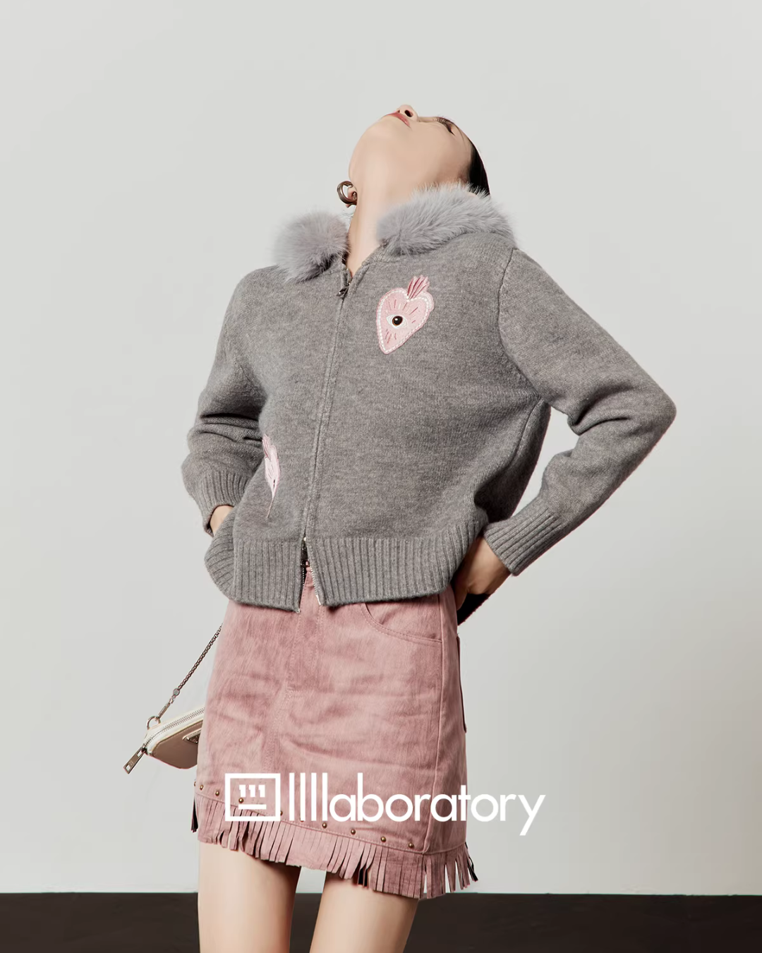 Heart-Eye Embroidered Double Zip Knit LLA0583