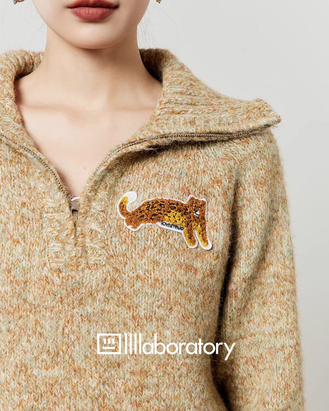 ちょこんとしたトラのワッペンが可愛らしいニットトップス。