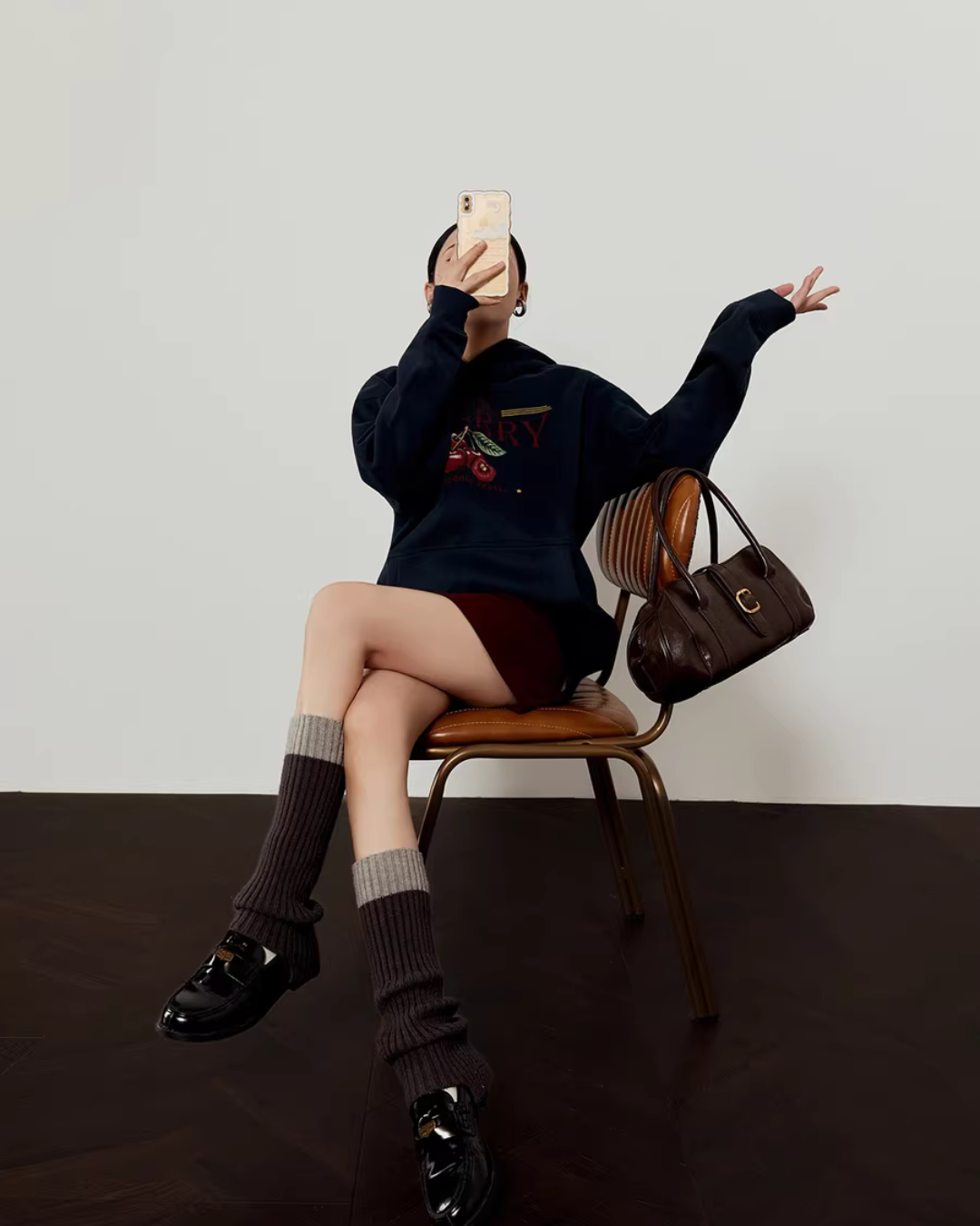 ポップなデザインイラストが映えるスウェットパーカー&スカートのセットアップ。
