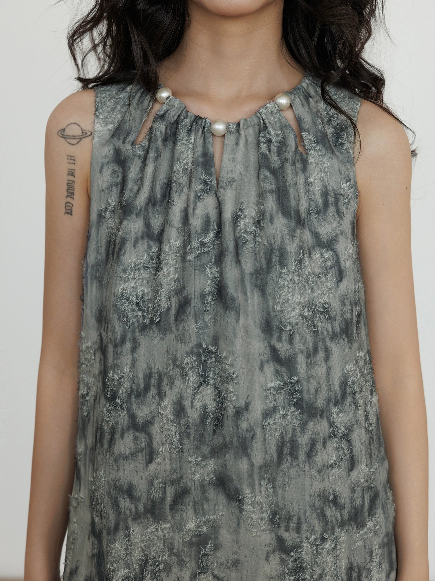 スッキリとしたノースリーブで大人っぽい印象に導きます。