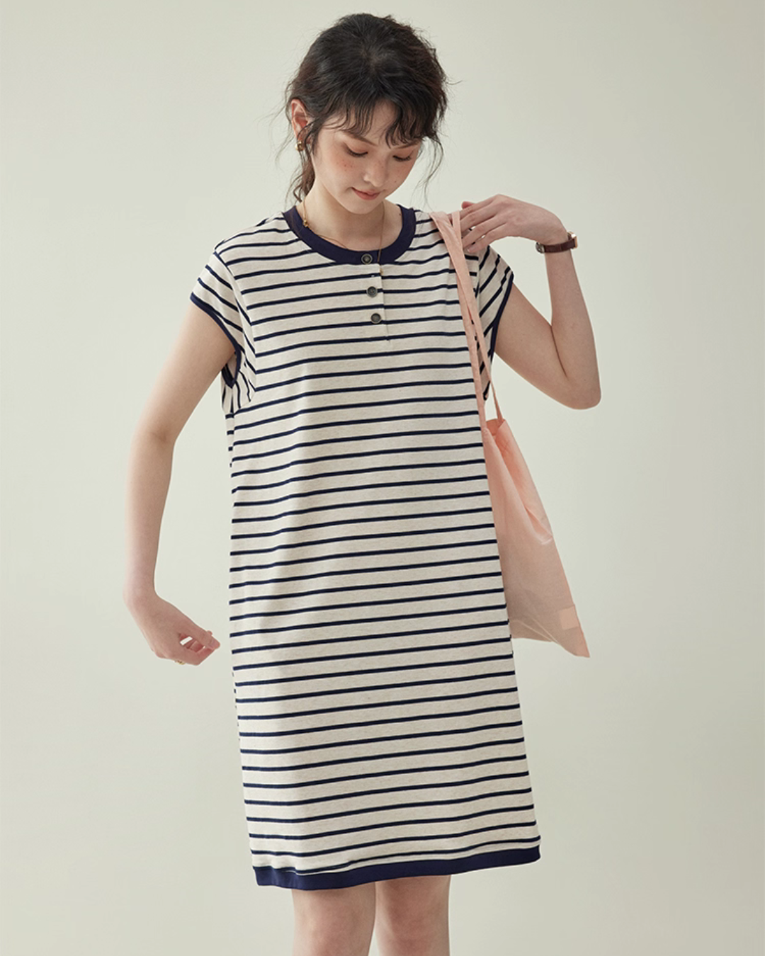 Striped Round Neck T-Shirt Dress AMU0037