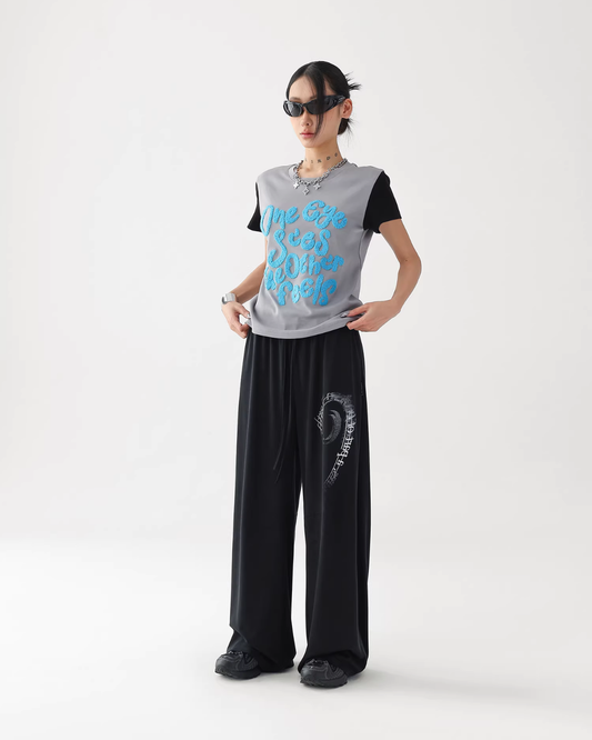 Stripe Crew Neck Zip Jacket / Wide Pants ACS0361
