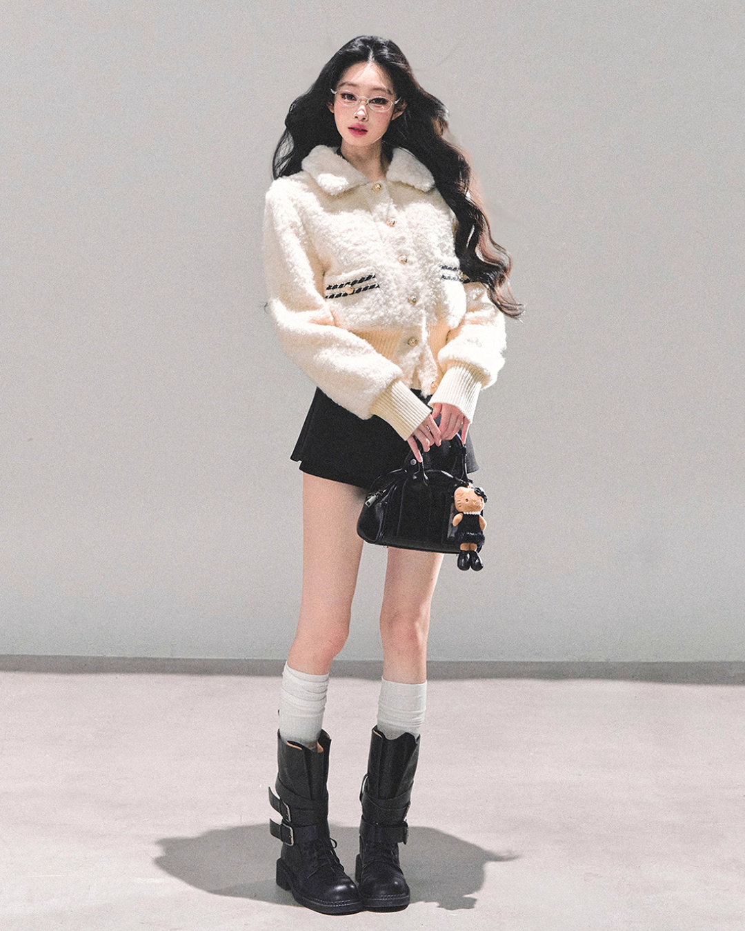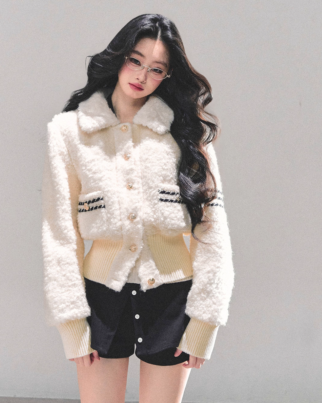 モコモコのボア素材で仕立てた肌触りの良いジャケット。