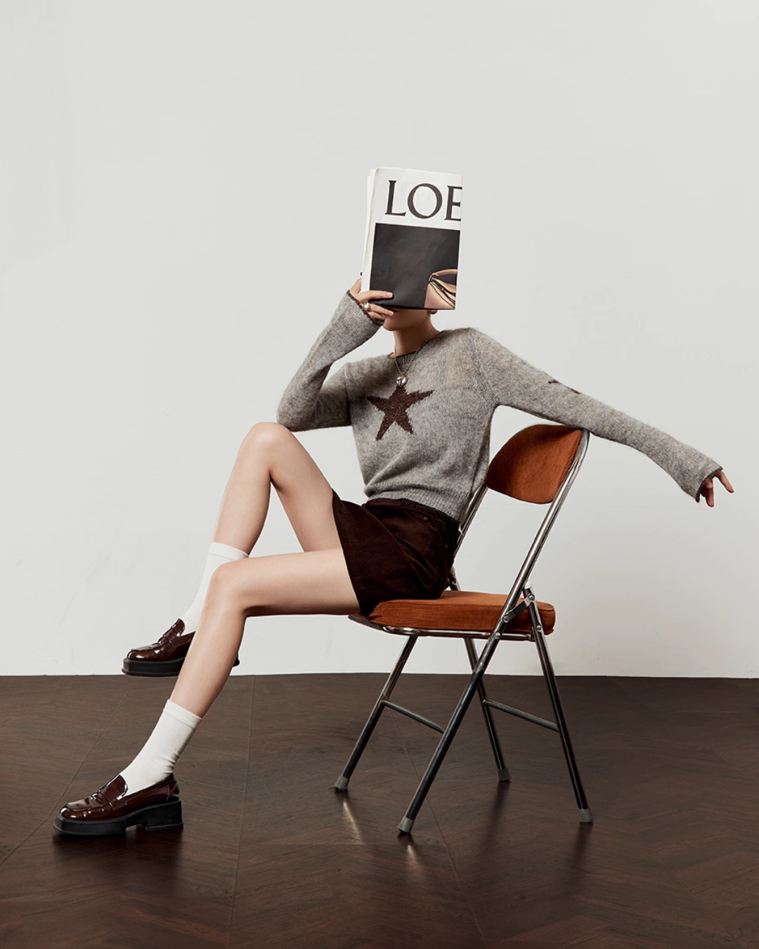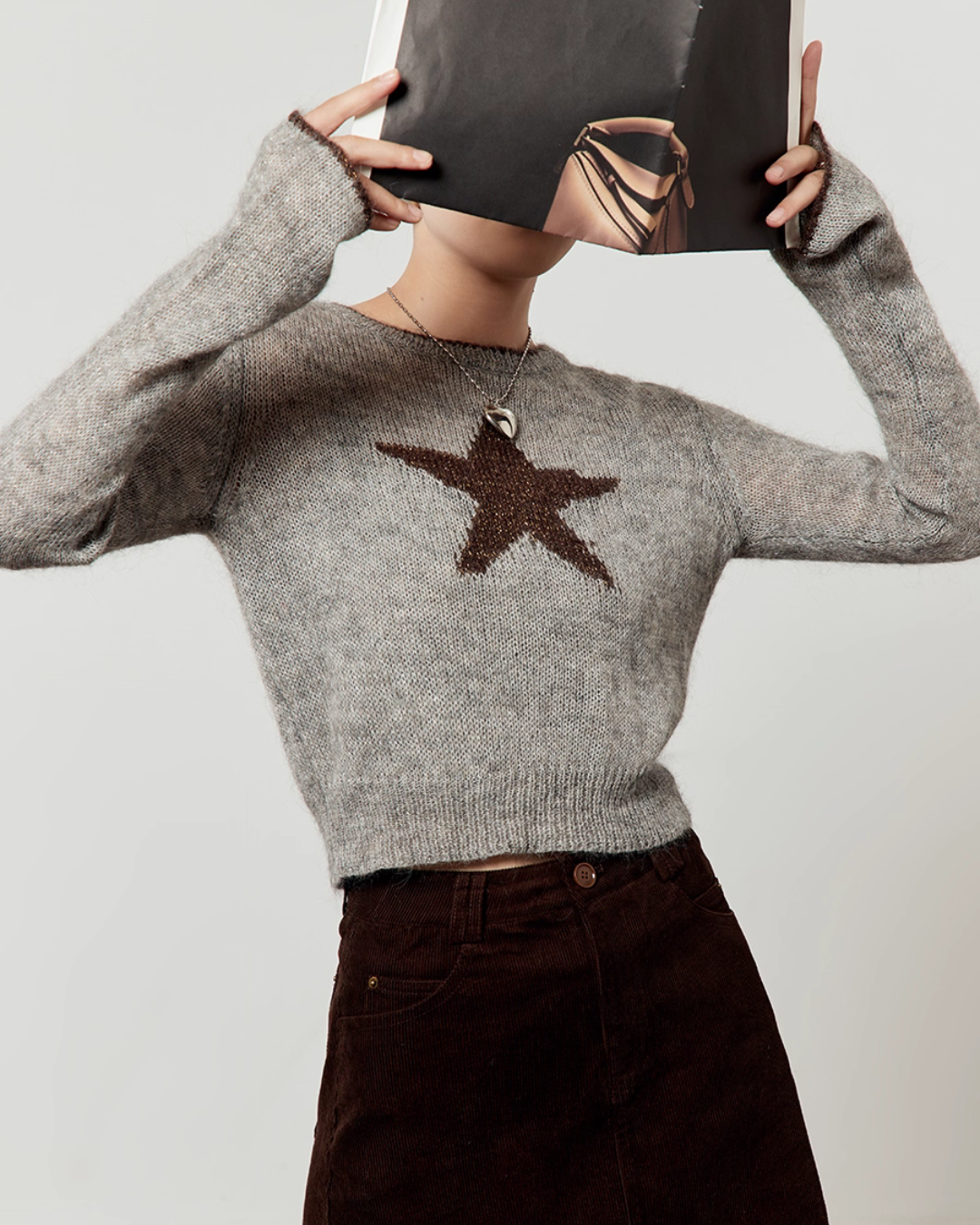 Star Round Neck Knit / A-line Mini Skirt LLA0539