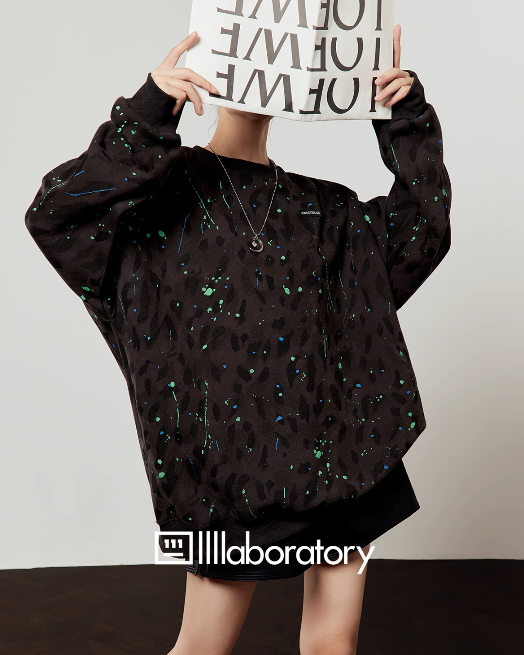Leopard Round Neck Top / Leather Skirt LLA0547