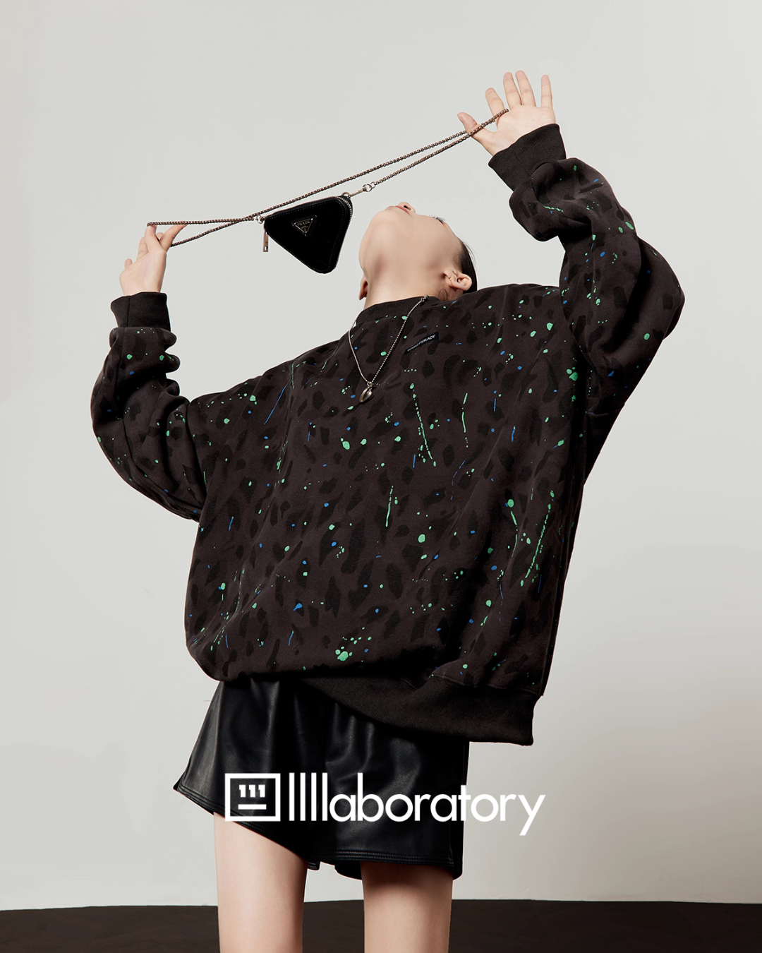 インパクトのある柄とカラーリングが目を惹くデザイントップス。