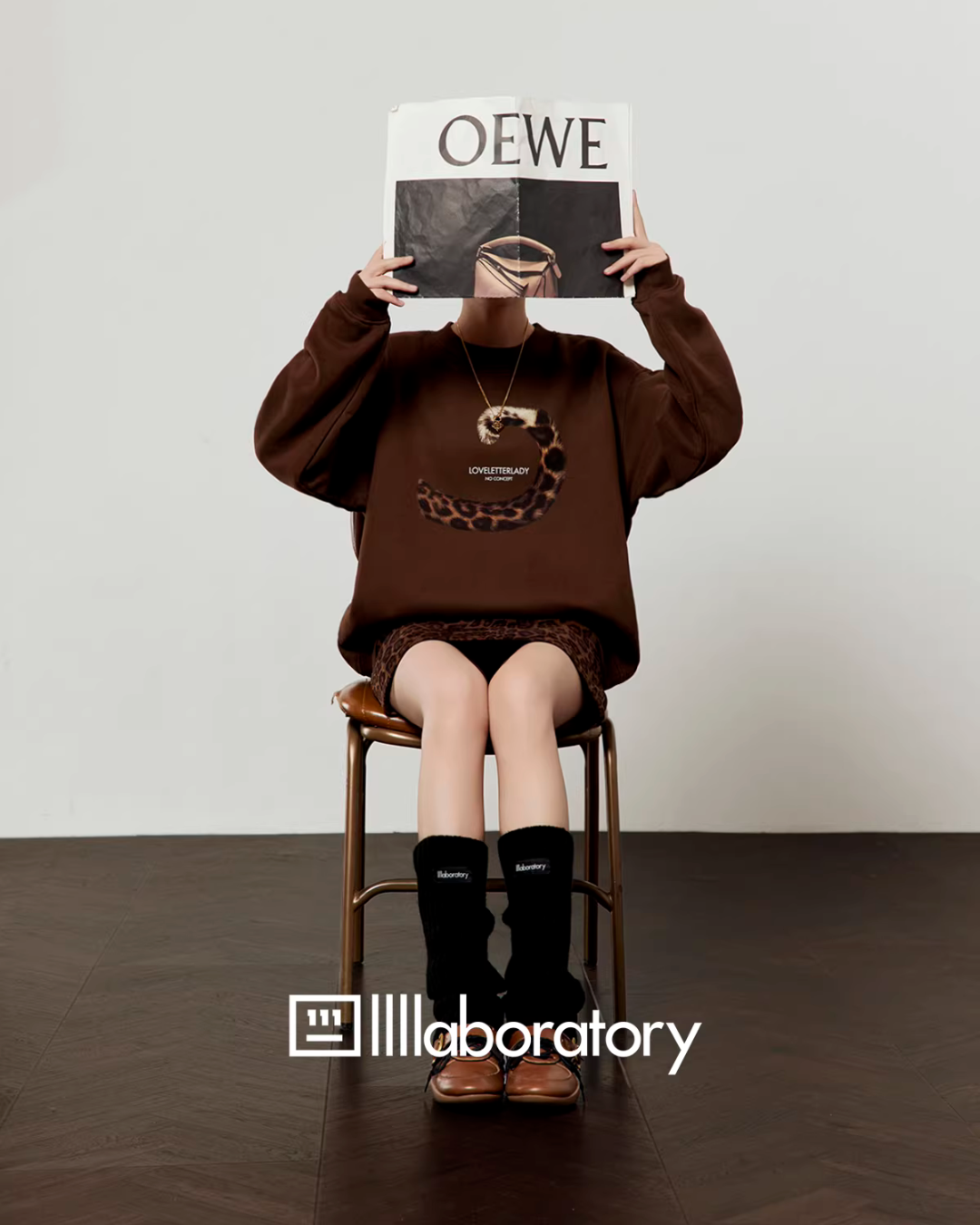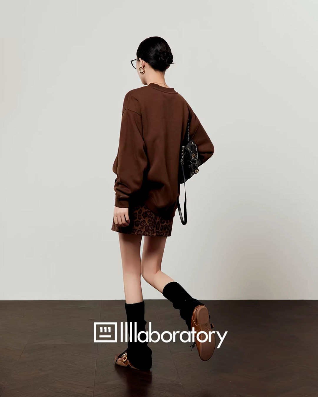 Tail Motif Sweatshirt / Leopard Print Mini Skirt LLA0621