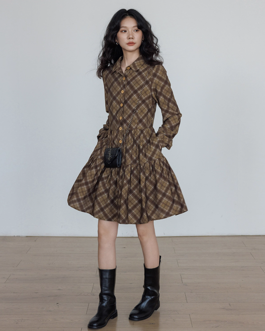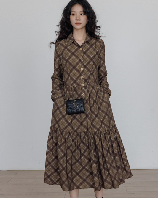 Long-Sleeve Shirt Flare Long Dress VAS0159