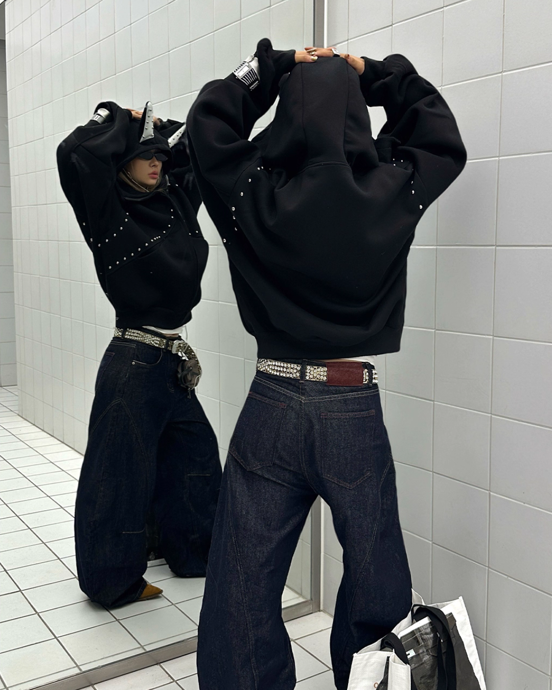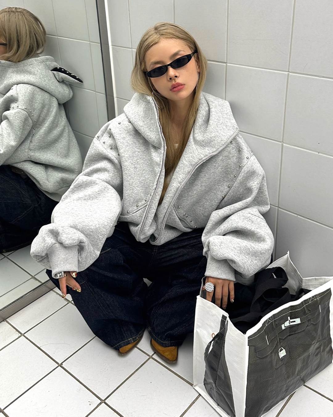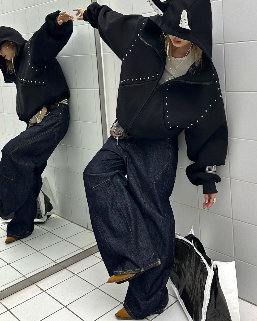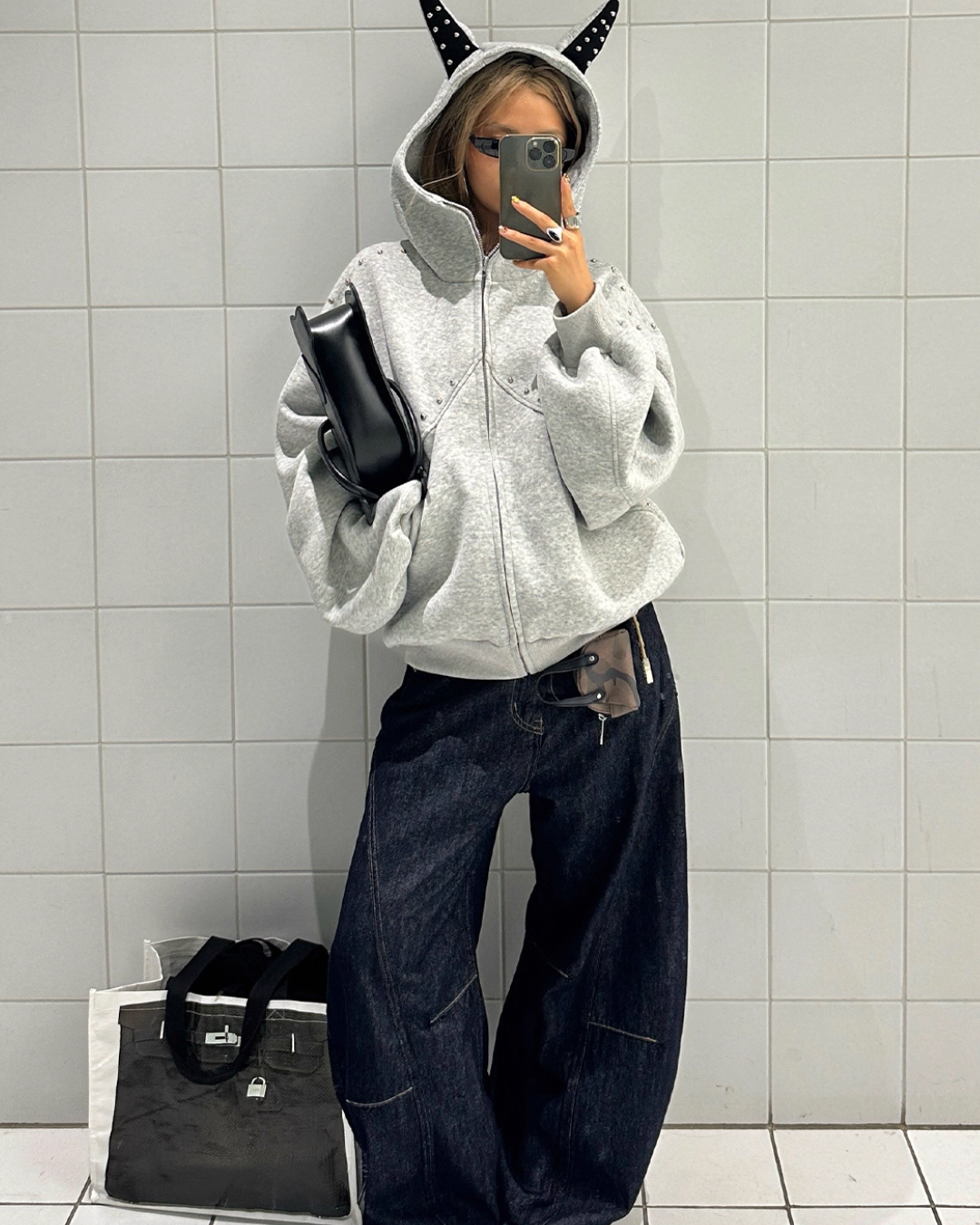 立体的なねこ耳が施されたオーバーシルエットのジップパーカー。