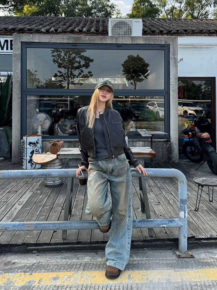 絶妙なビンテージ感がお洒落な雰囲気漂うワイドデニムパンツ。