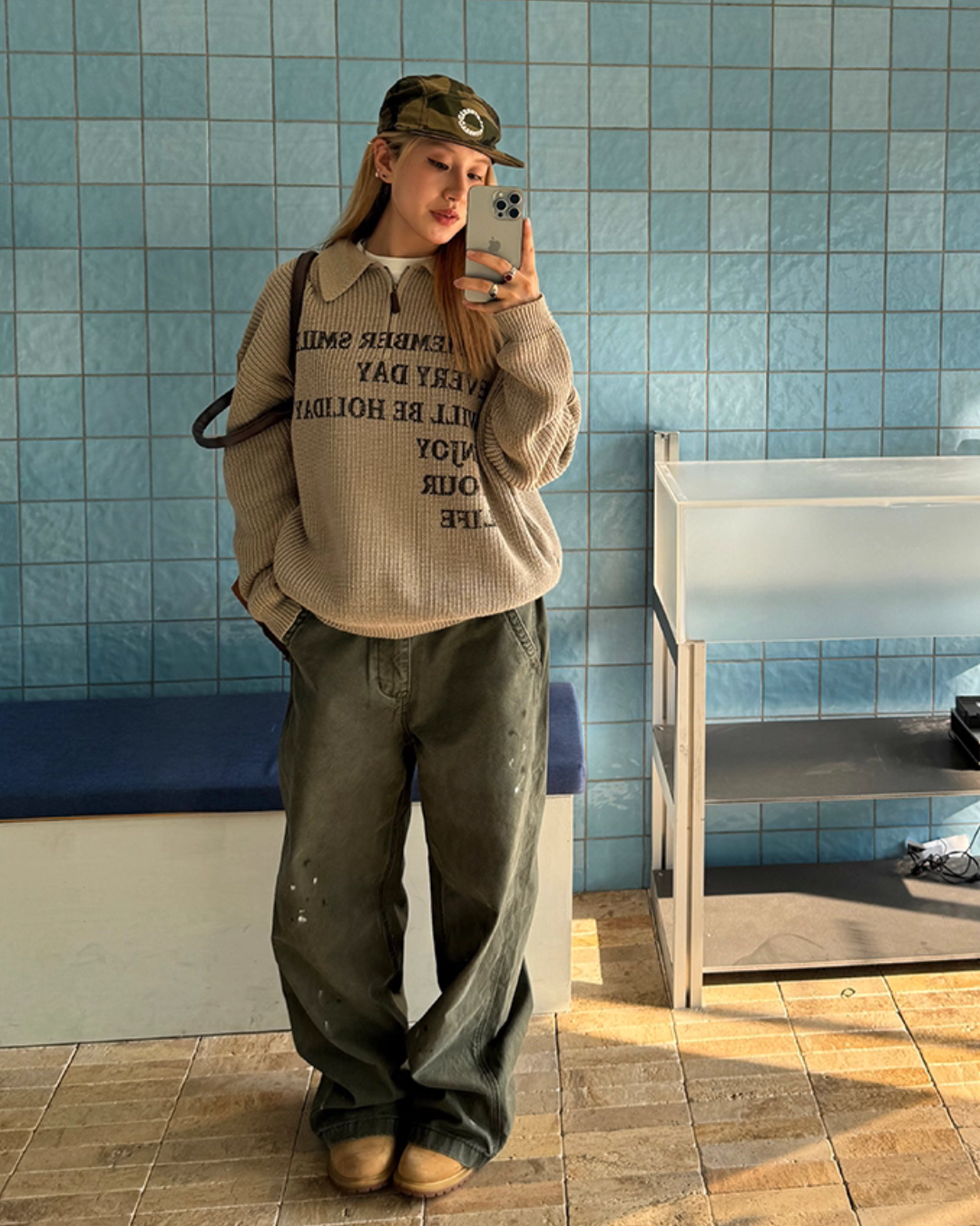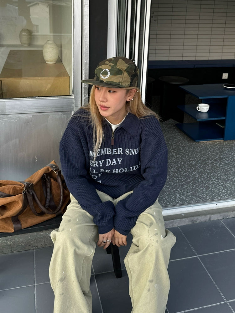 ハーフジップデザインで首元を調整でき、スポーティさもプラス。
