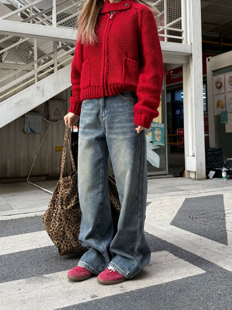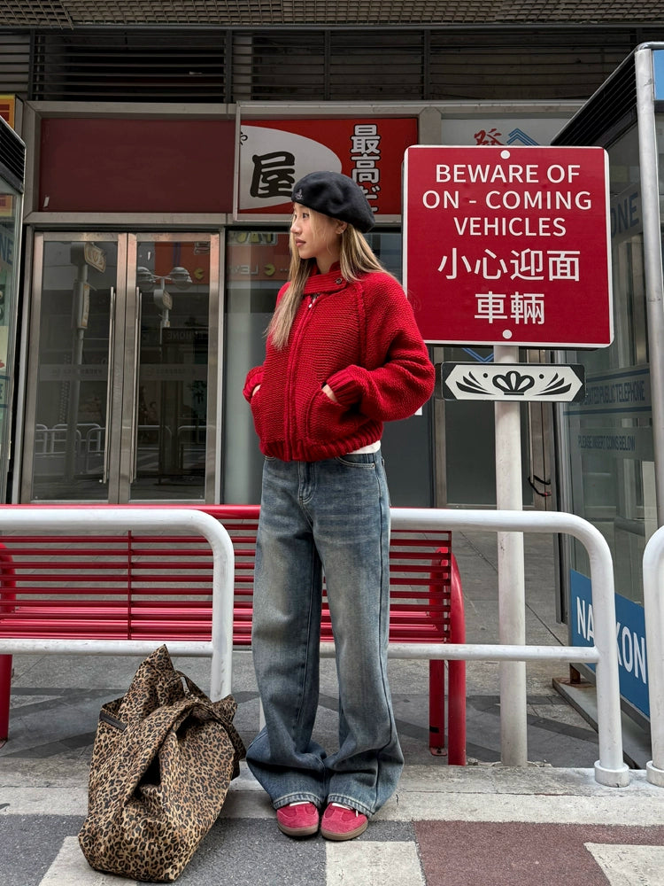トップスはすっきりとしたクロップド丈やジャストサイズのアイテムと好相性。