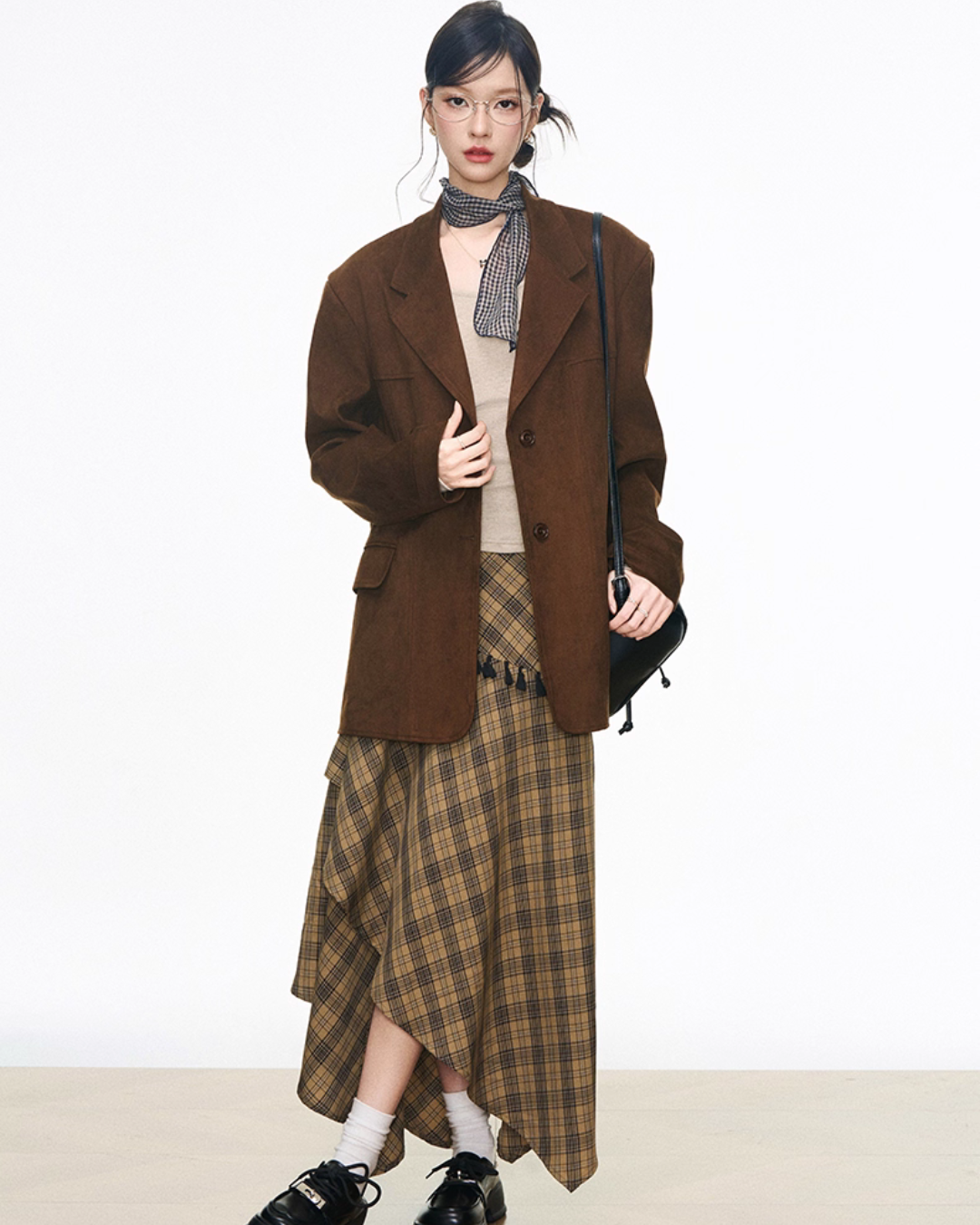 Retro Vintage Jacket / Tight Long Sleeve Top / Paid Asymmetric Skirt WEO0060