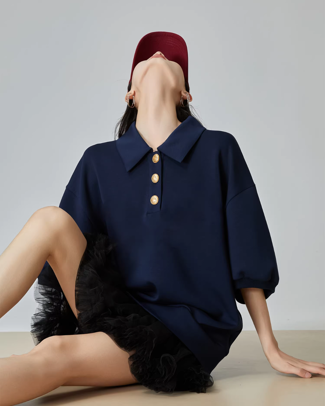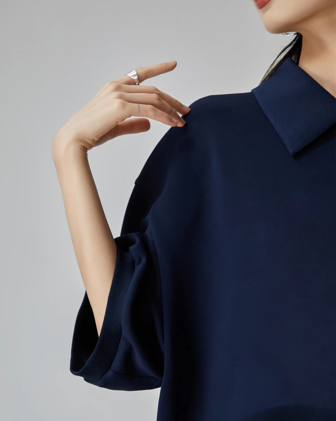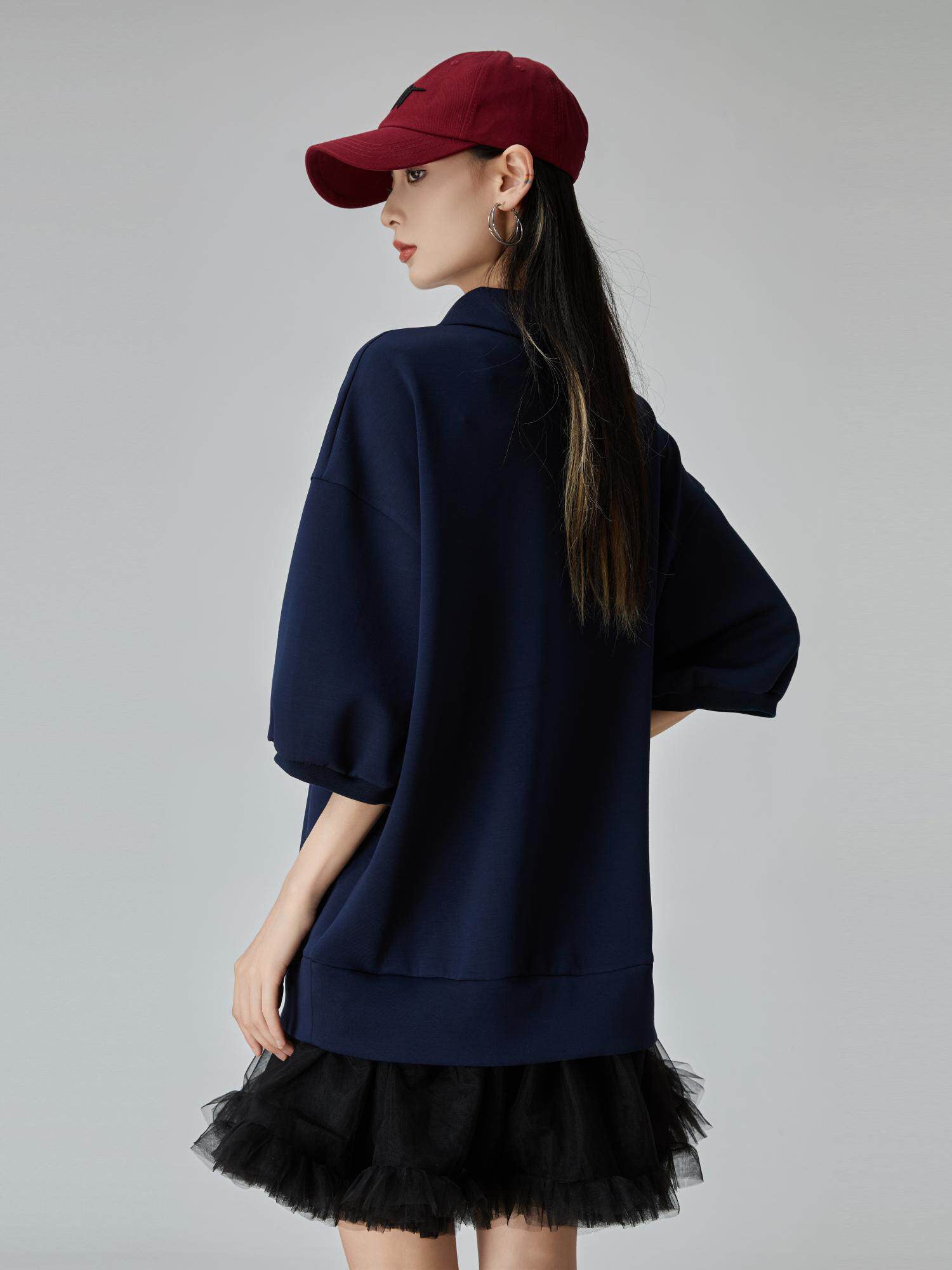 ゆったりとしたシルエットに、袖口を絞ったボリュームスリーブが可愛らしさをプラス。