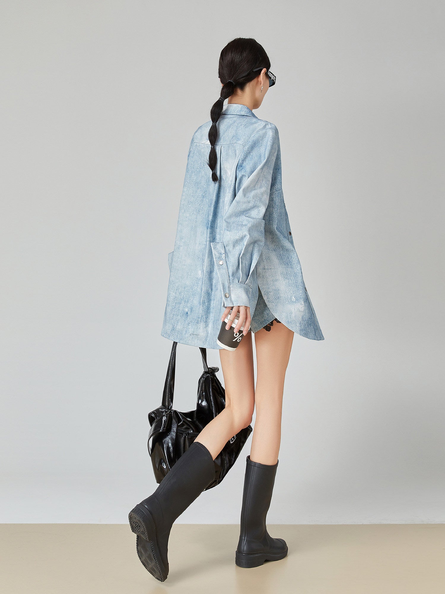 Denim Long-Sleeve Shirt / High-Waisted Shorts FER0076