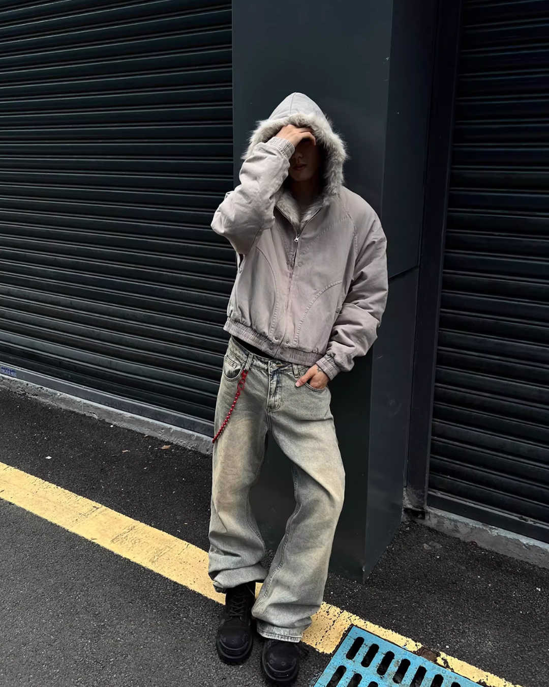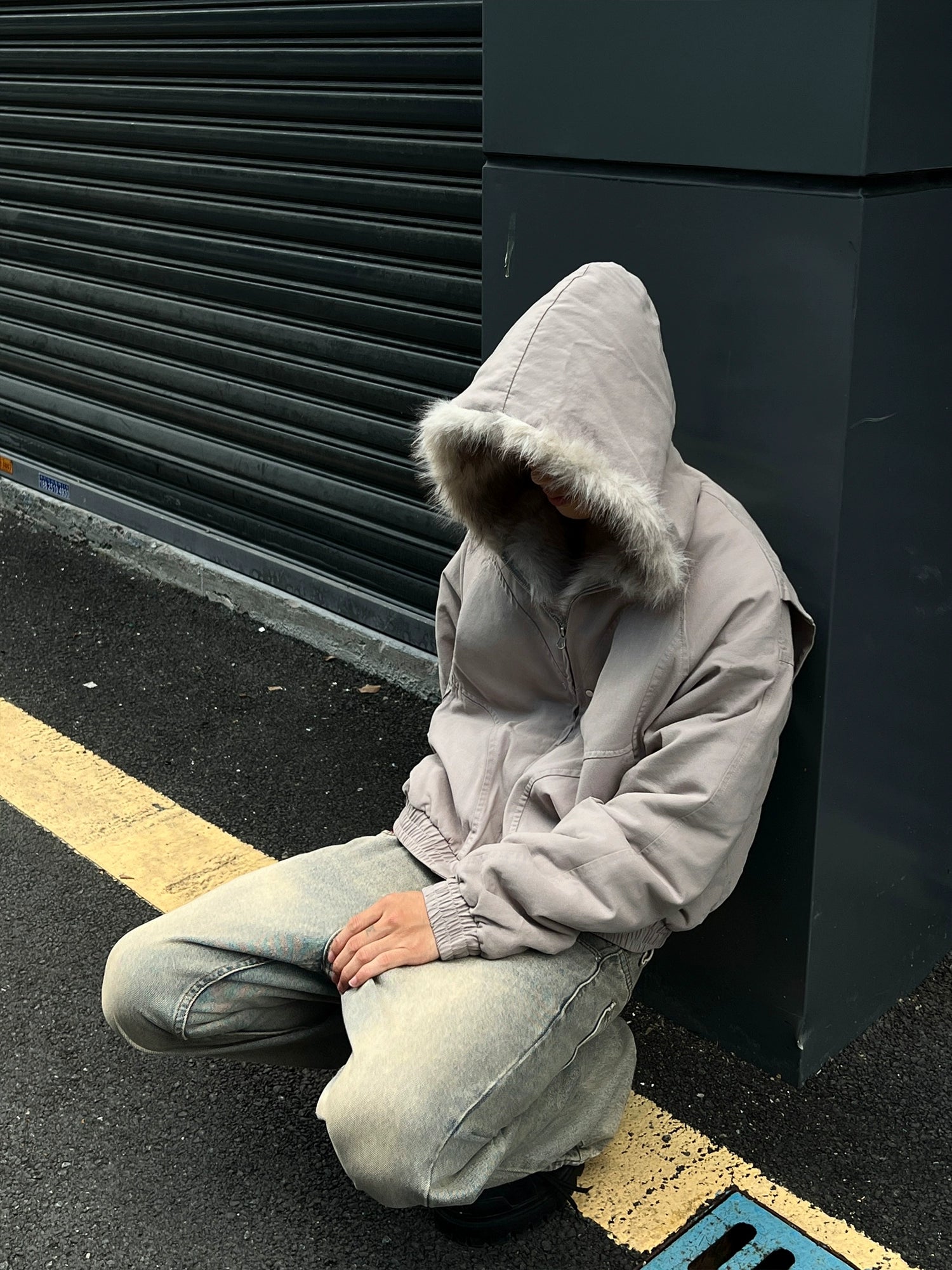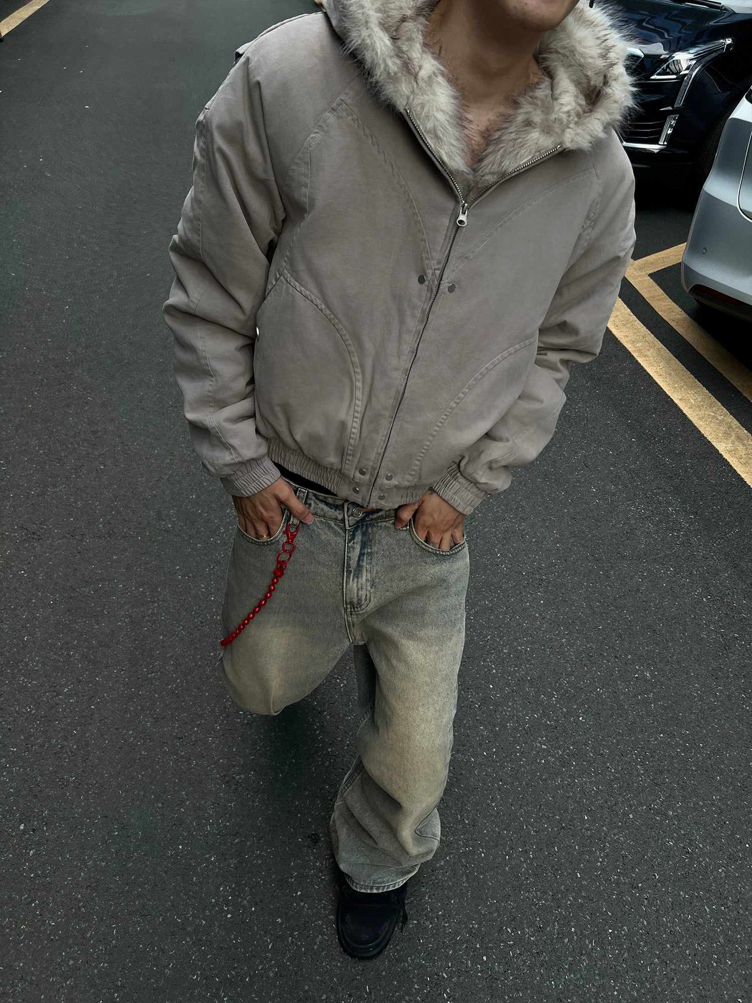 存在感のあるフェイクファー付きのお洒落ブルゾン。