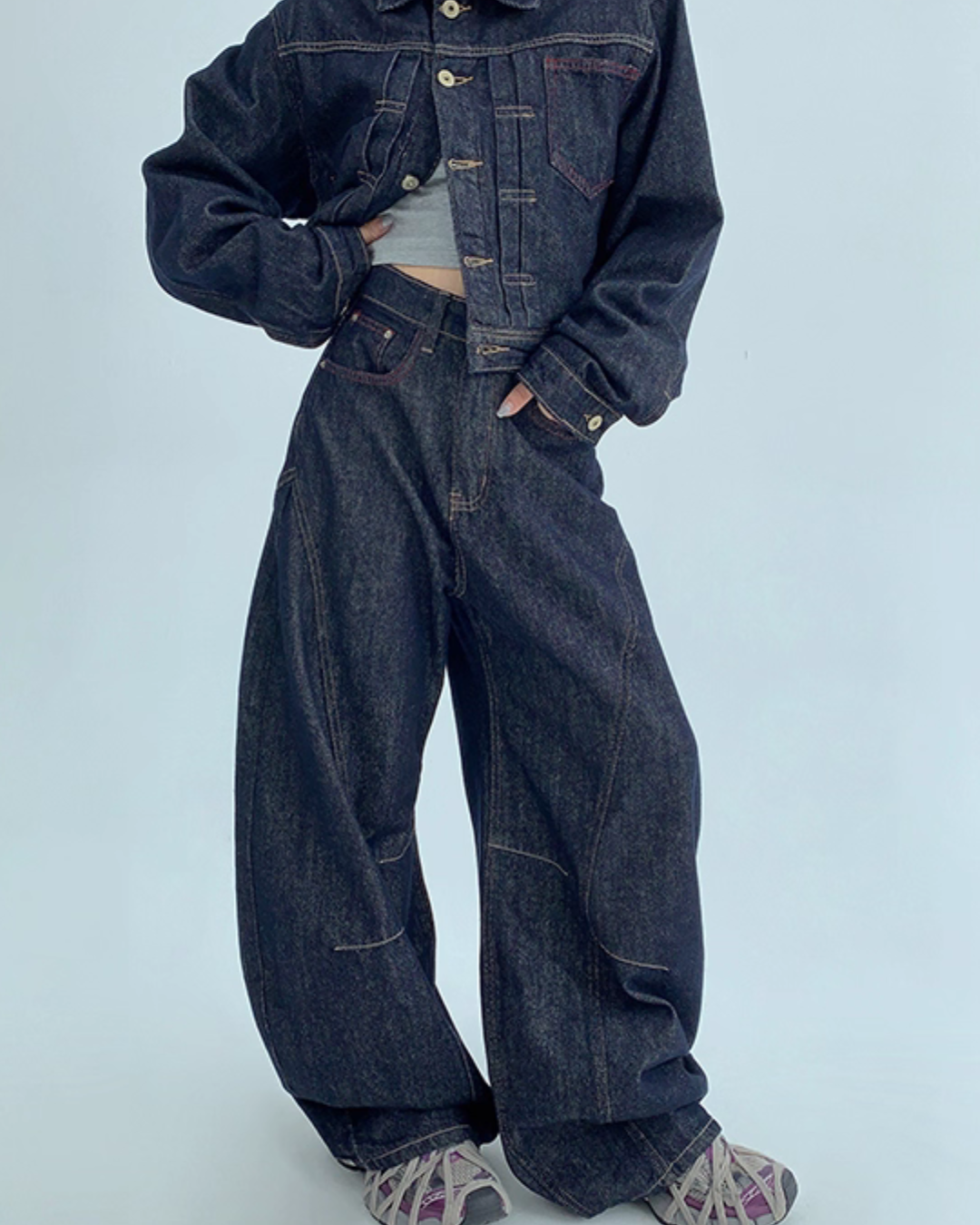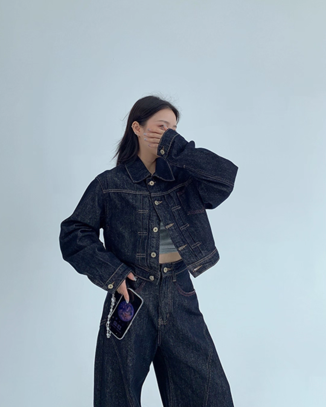 Dark Blue Denim Jacket / Wide Denim Pants YLS0912