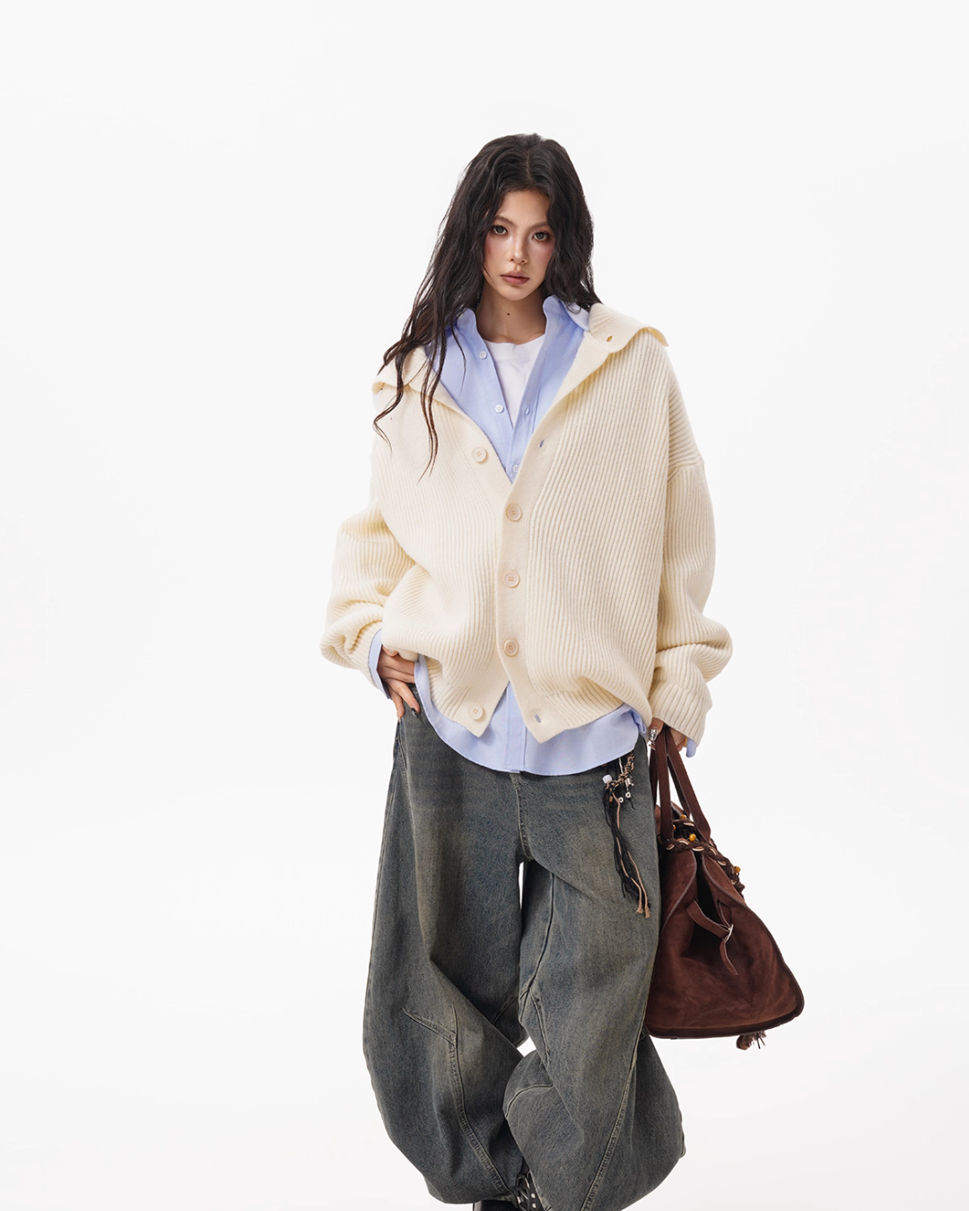 ゆったり着られるルーズなシルエットがポイントのニットカーディガン。