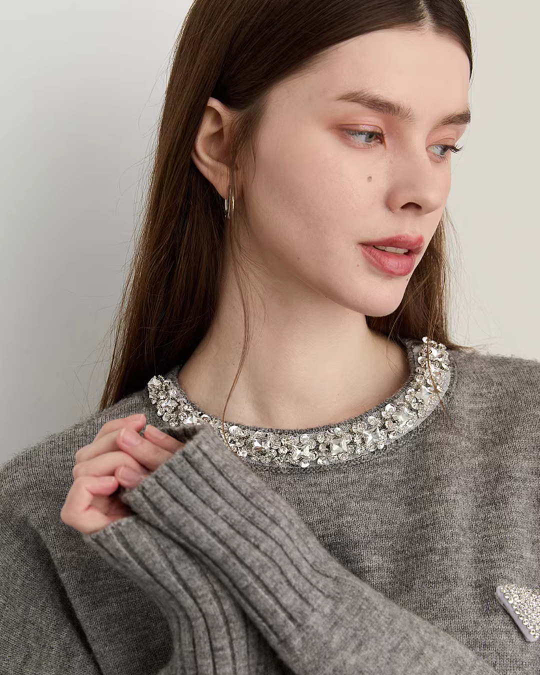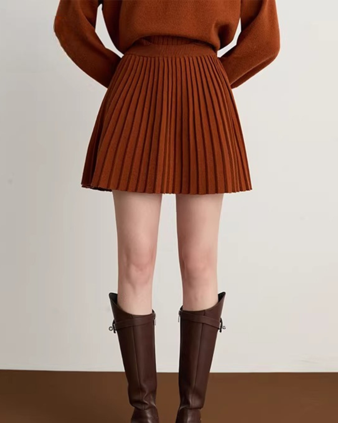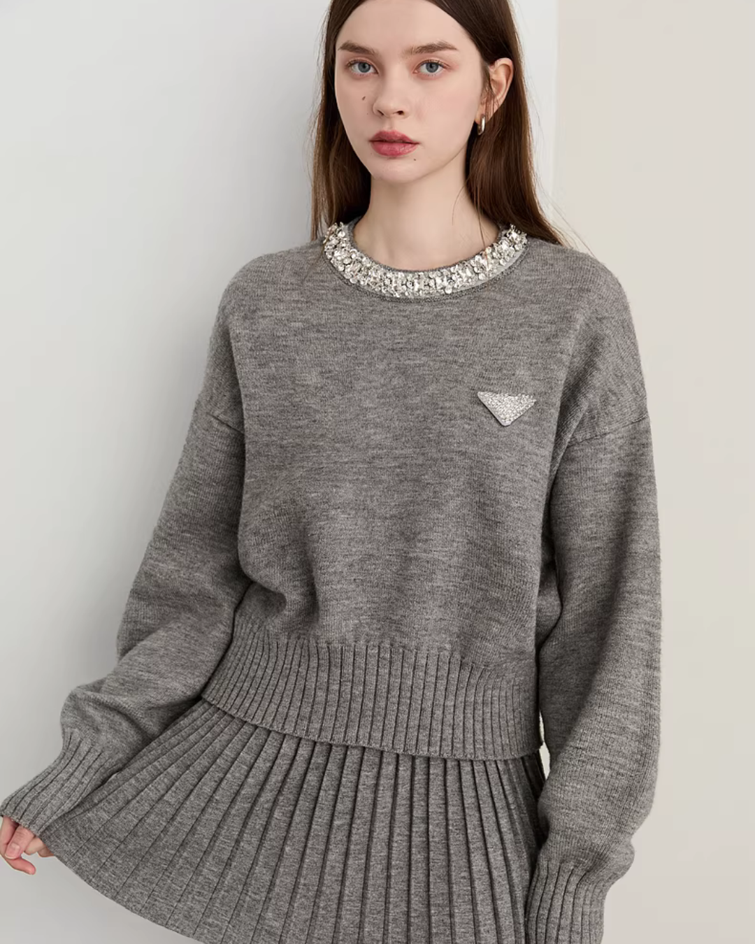 Sparkling Collar Knit Top / Knit Pleated Skirt DPY0075