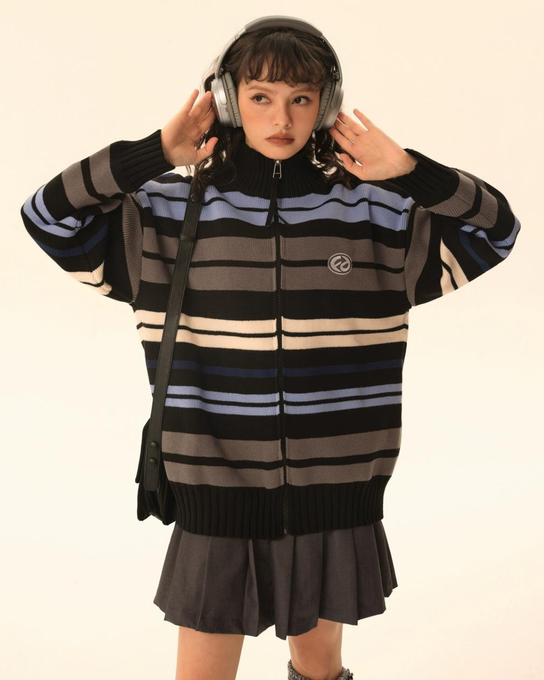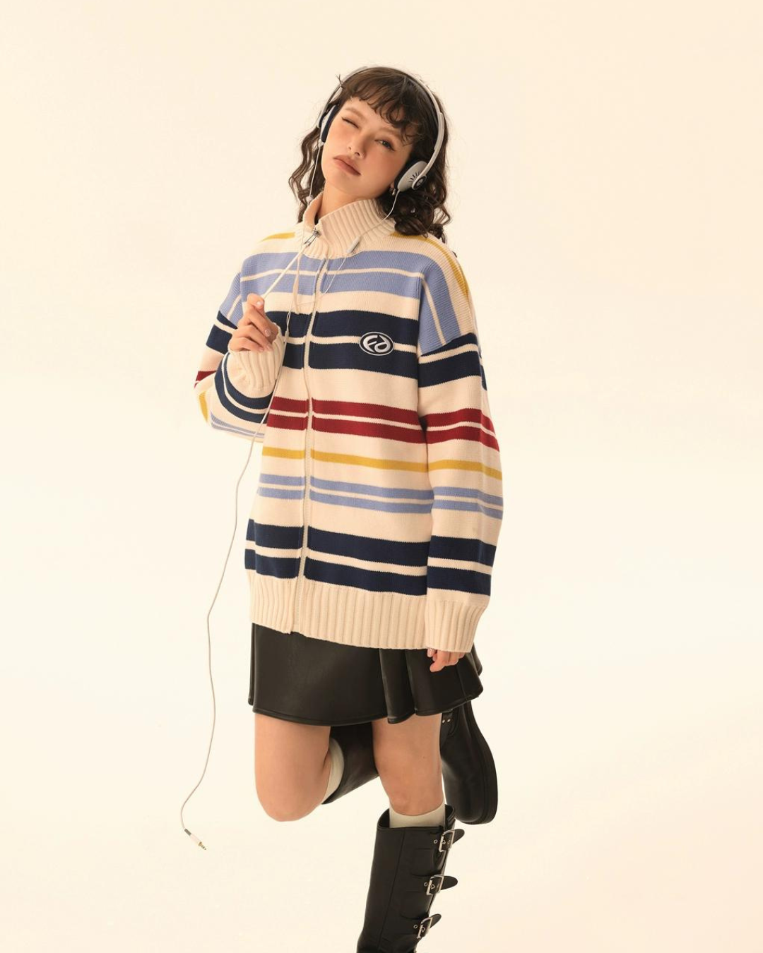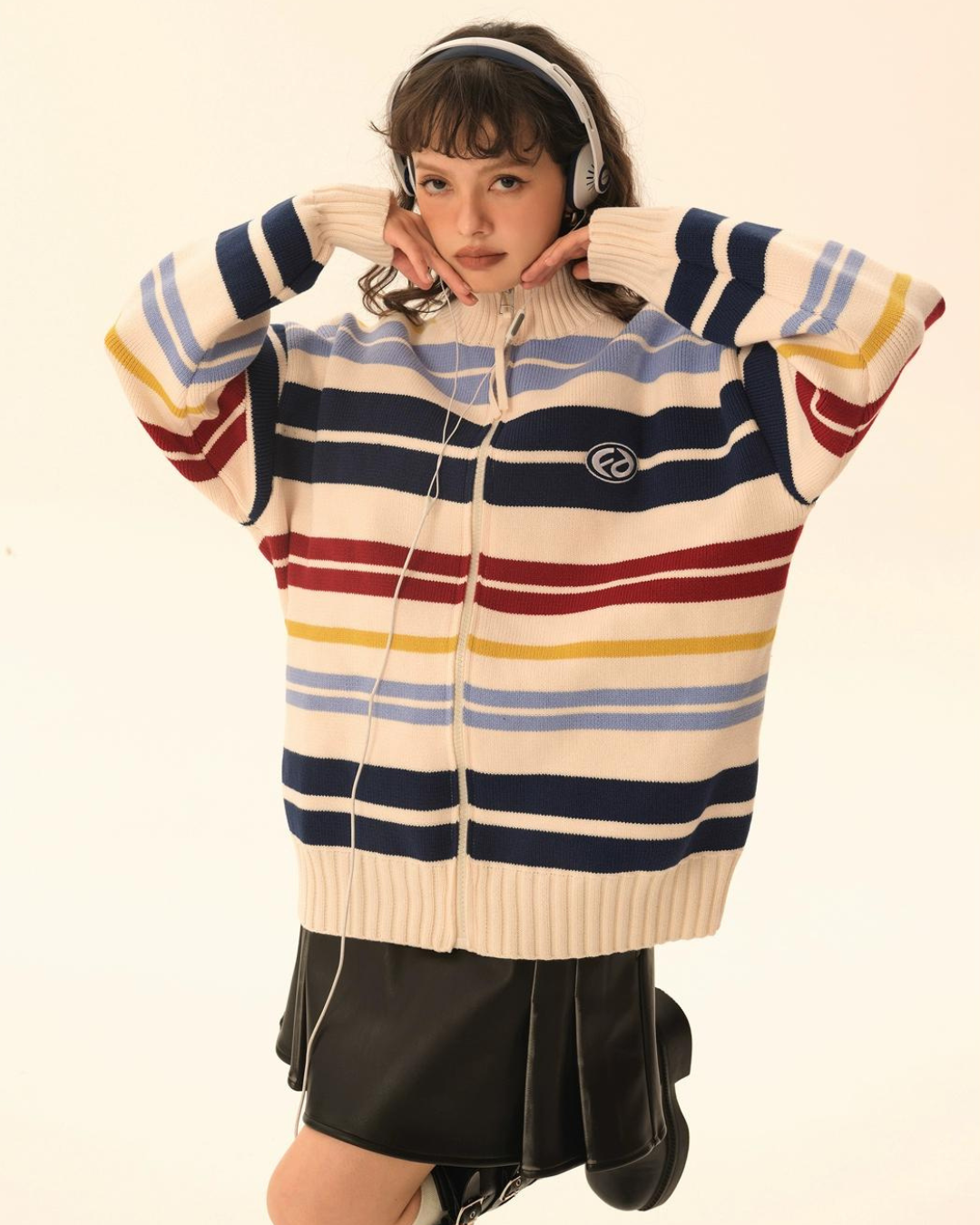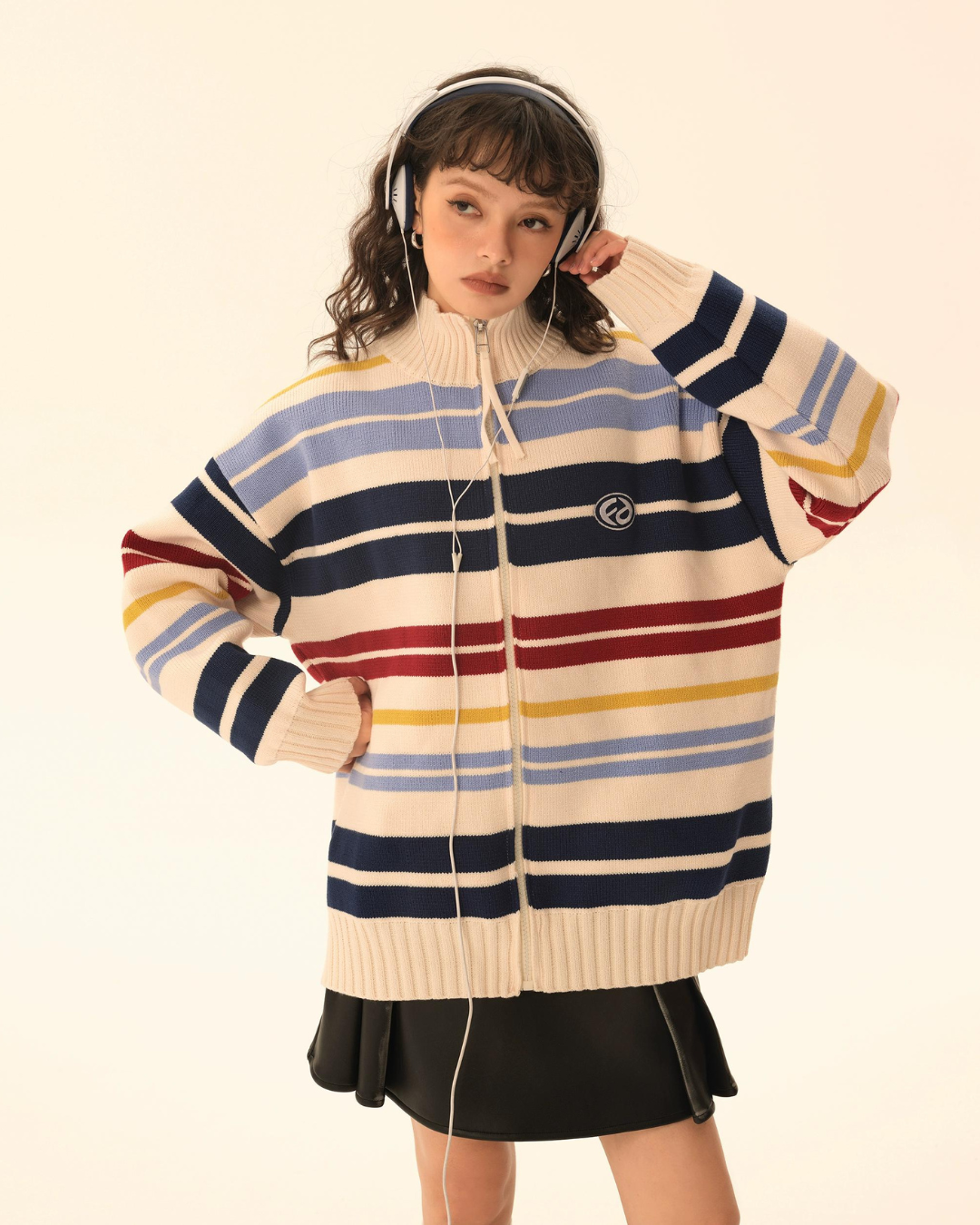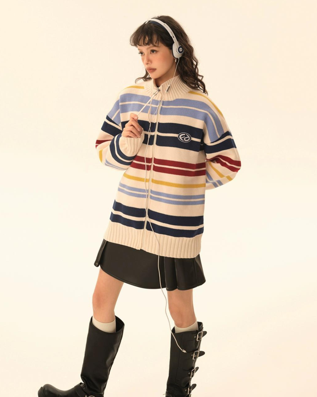 Retro Turtleneck Border Cardigan EZK0002