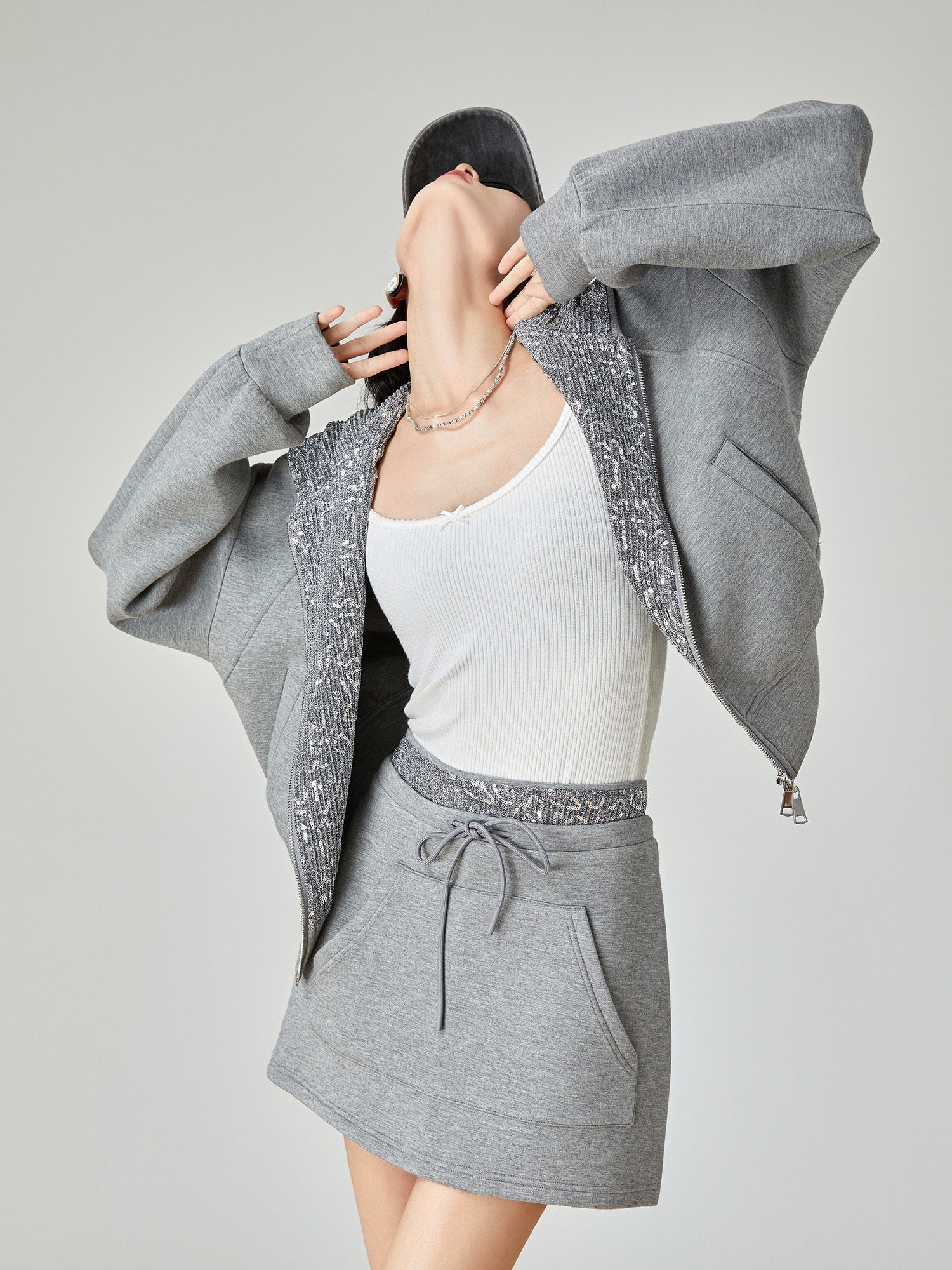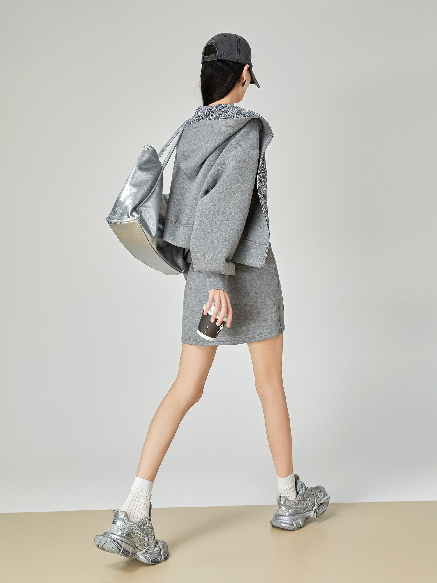 Gray Sequin Hood Jacket / A-Line Half Skirt FER0039