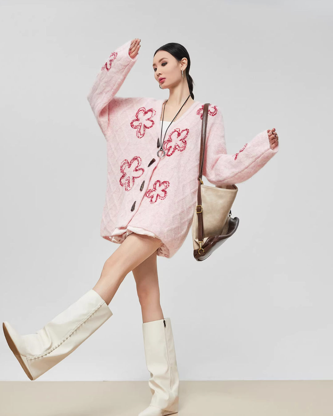 Flower Cable Knit Cardigan FER0042
