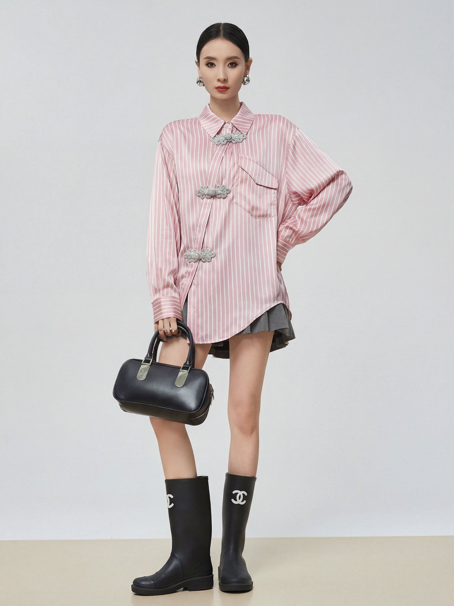 チャイナ風デザインで他と差をつけるストライプシャツ。